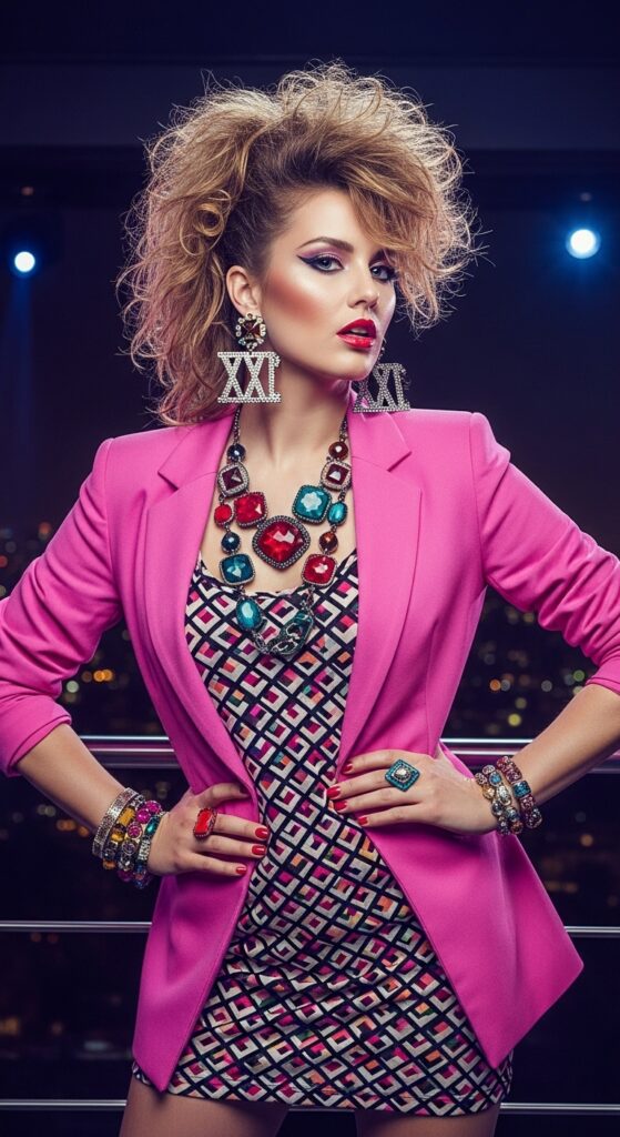 FĂŒr Damen war der 80er-Look besonders vielfĂ€ltig. Beliebte Elemente fĂŒr ein authentisches 80er Outfit Damen sind: