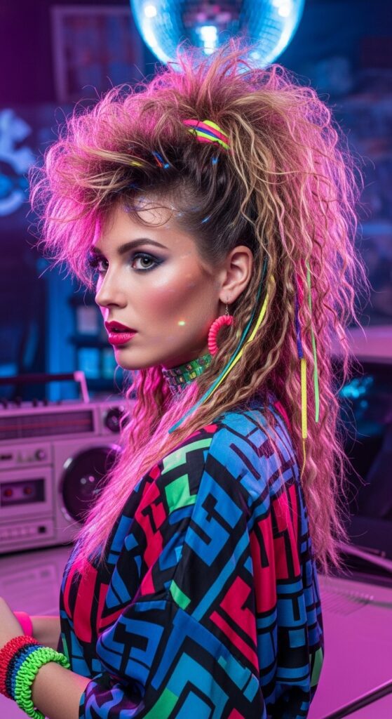 Kein 80er Jahre Outfit ist komplett ohne das passende Styling. Denk an: