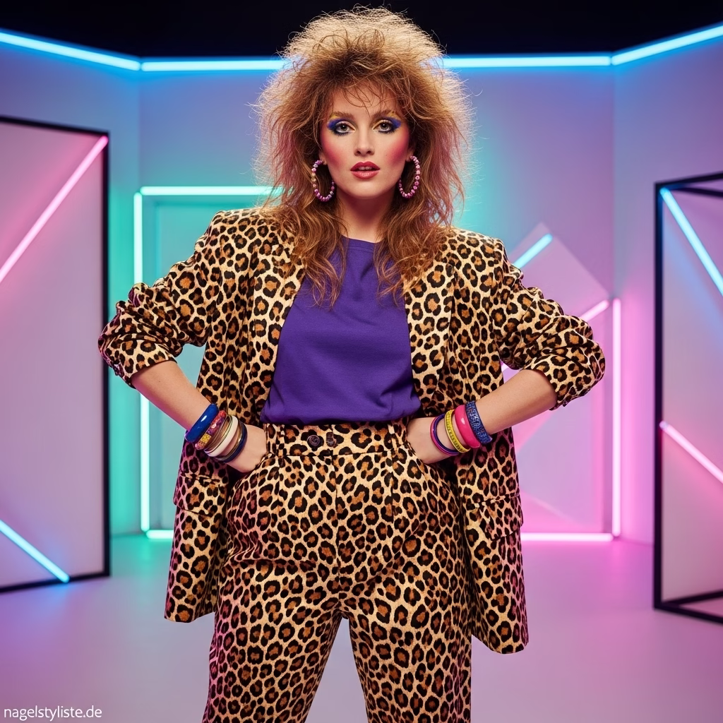 Obwohl der Leopardenprint stark mit den 80ern verbunden ist, besitzt er eine zeitlose Qualität. Seine Symbolik – Stärke, Wildheit, Selbstbewusstsein – ist universell. Genau deshalb kehrt das 80er Jahre Outfit mit Leopard immer wieder in die Mode zurück.