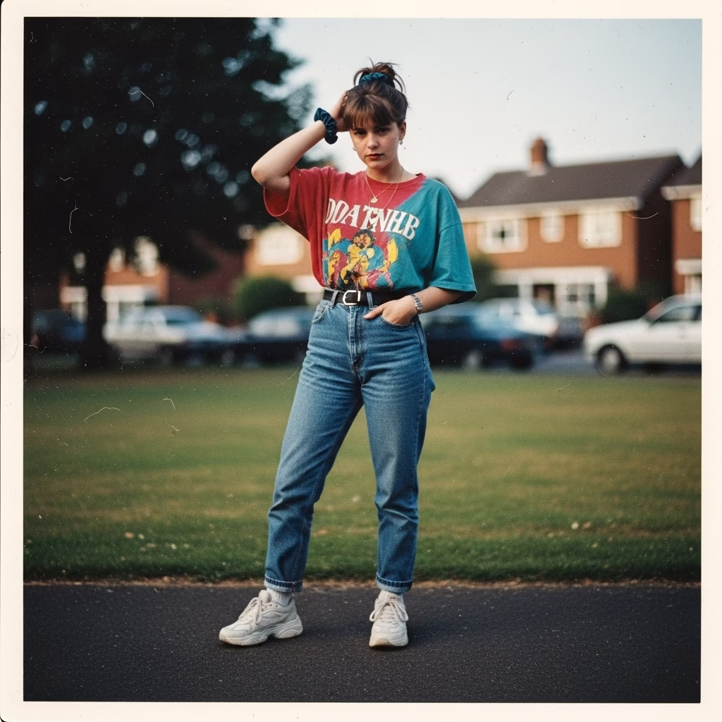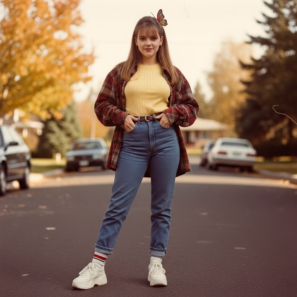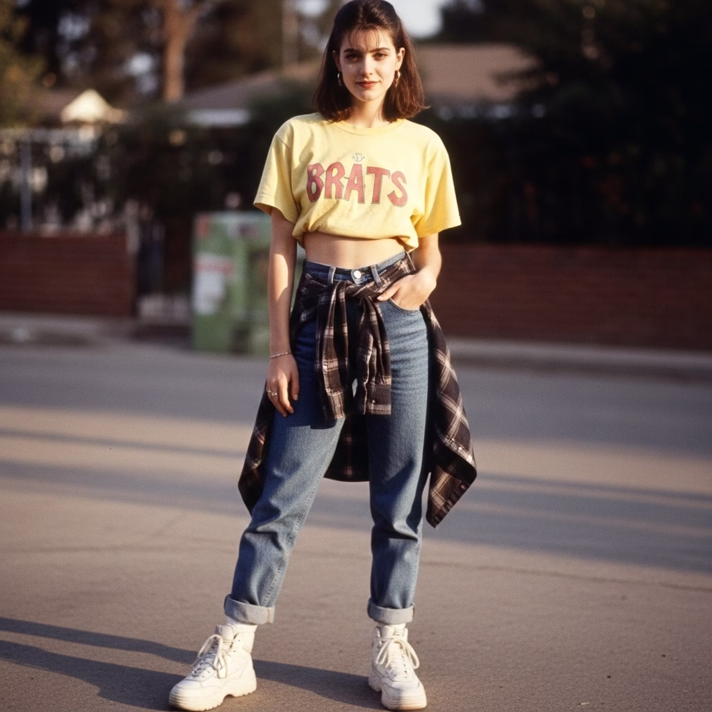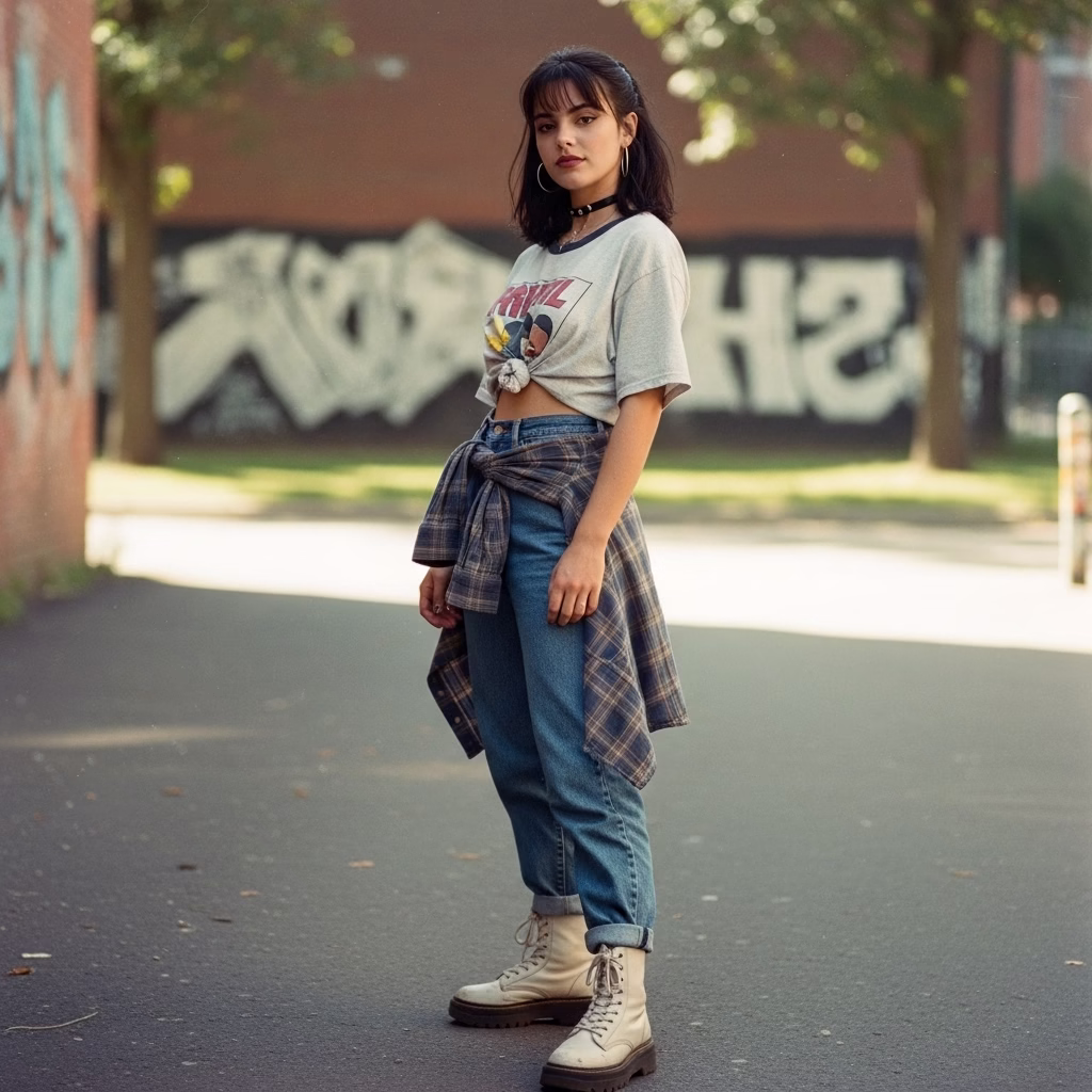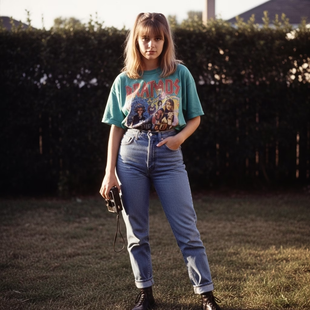 Mode wurde tragbarer, alltagstauglicher und persönlicher. Das 90er Jahre Outfit Damen transportierte das Gefühl von Unabhängigkeit und müheloser Coolness – ein Stil, der nicht gefallen wollte, sondern selbstverständlich wirkte.
