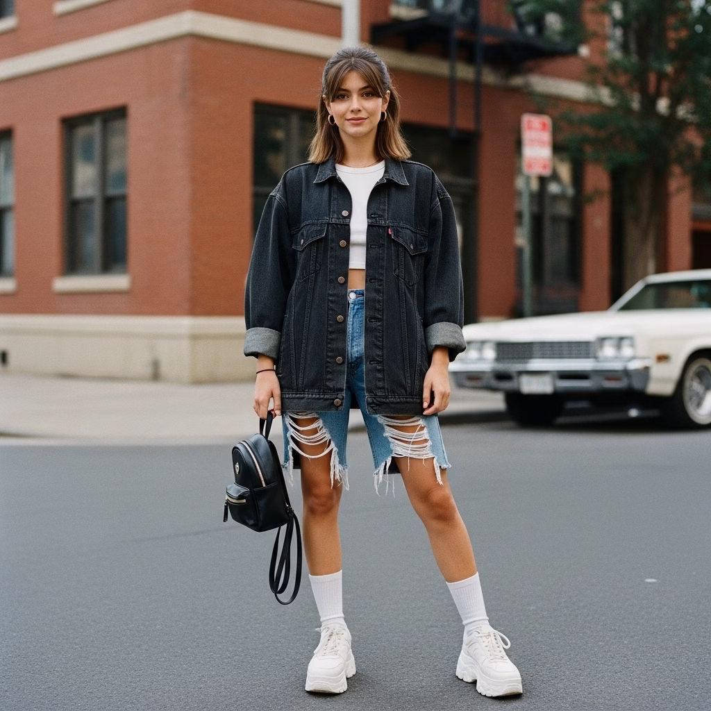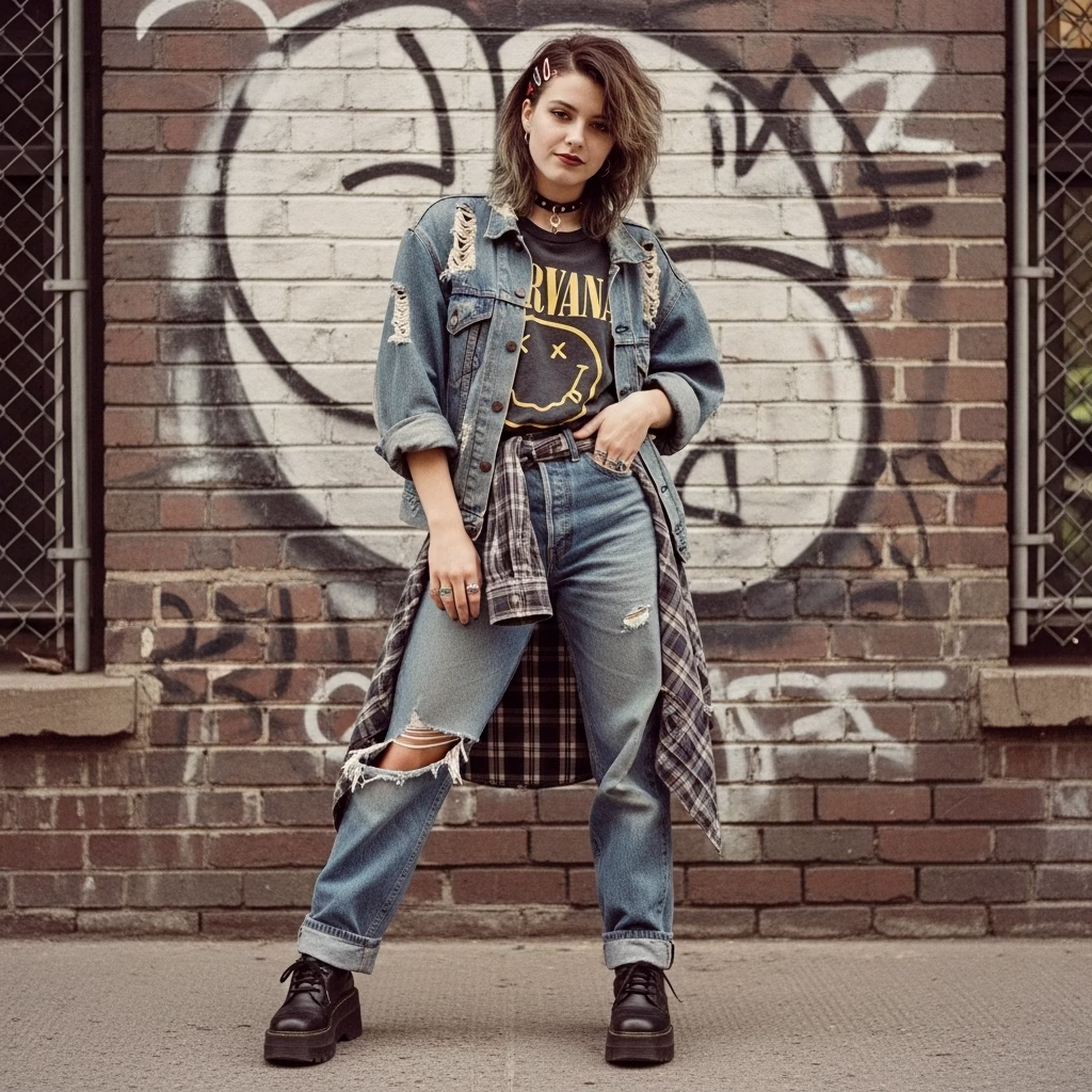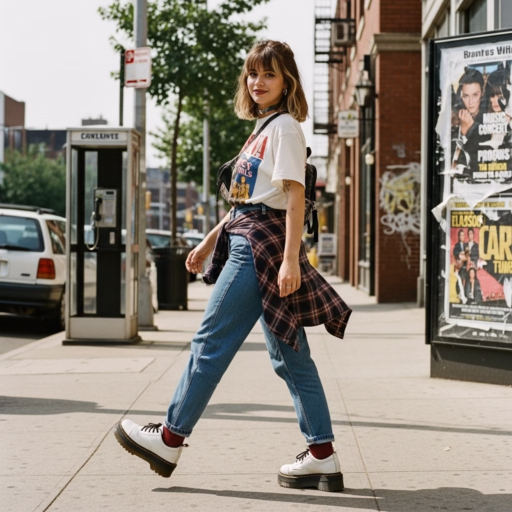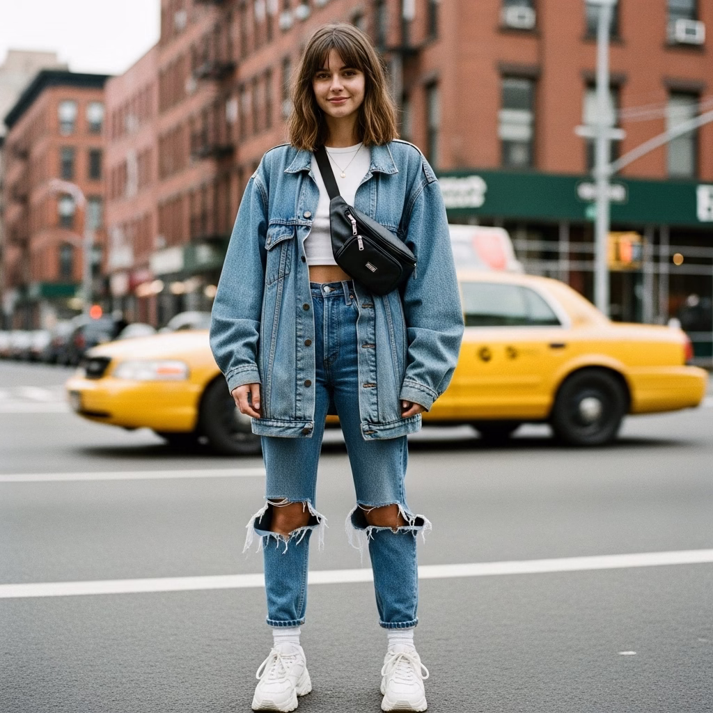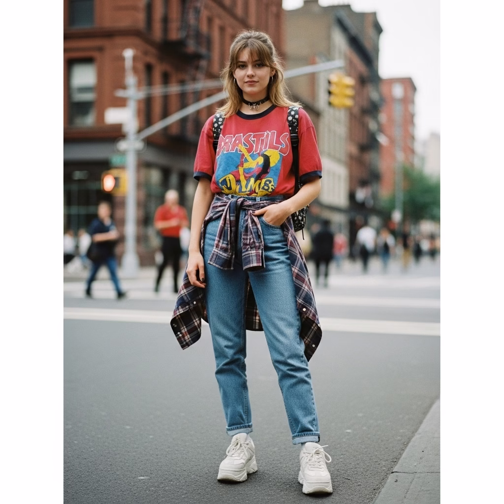 Mode wurde tragbarer, alltagstauglicher und persönlicher. Das 90er Jahre Outfit Damen transportierte das Gefühl von Unabhängigkeit und müheloser Coolness – ein Stil, der nicht gefallen wollte, sondern selbstverständlich wirkte.