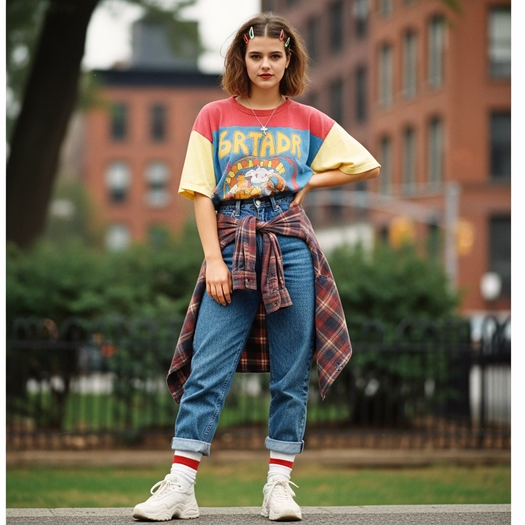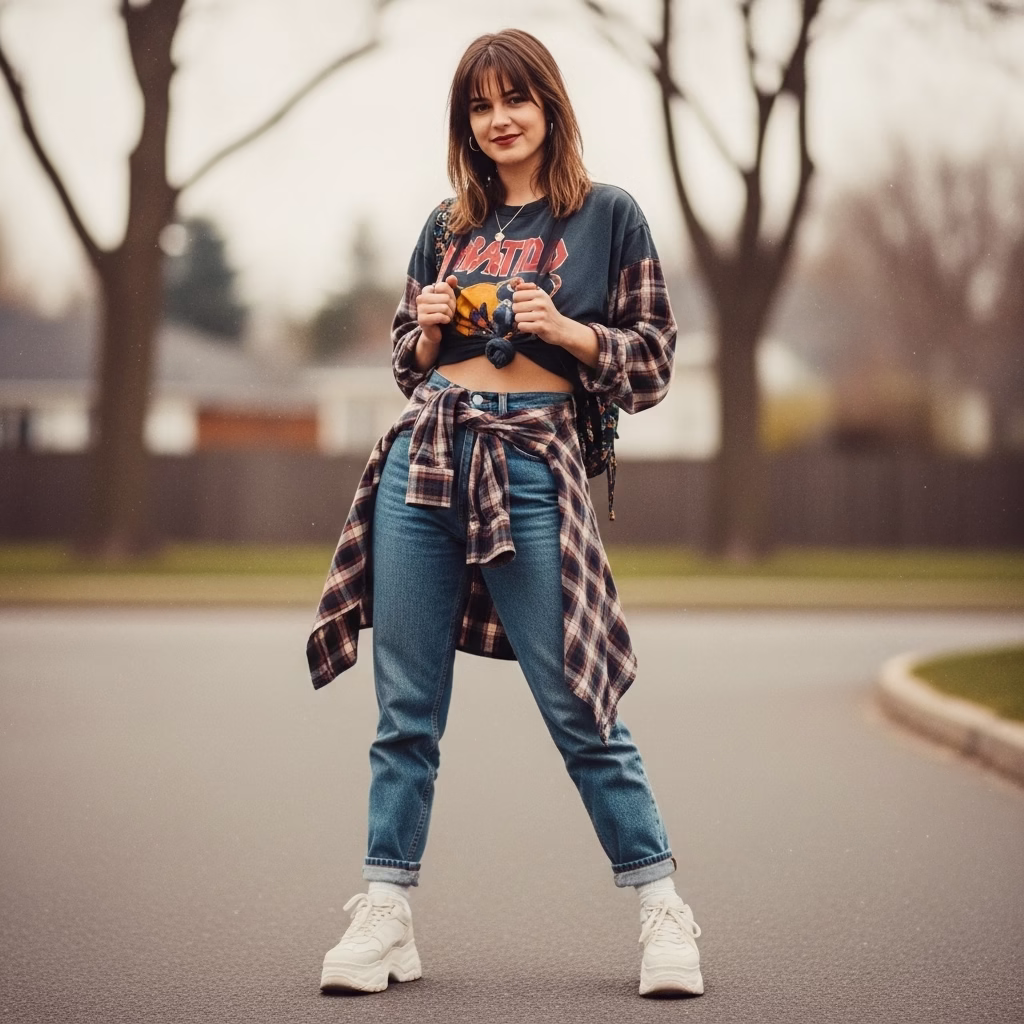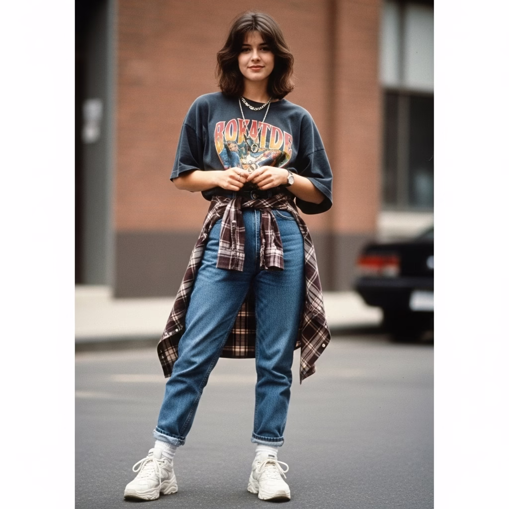 Das 90er Jahre Outfit Damen besitzt dadurch eine zeitlose Qualität, die unabhängig von kurzlebigen Trends funktioniert.
