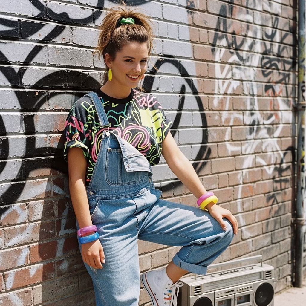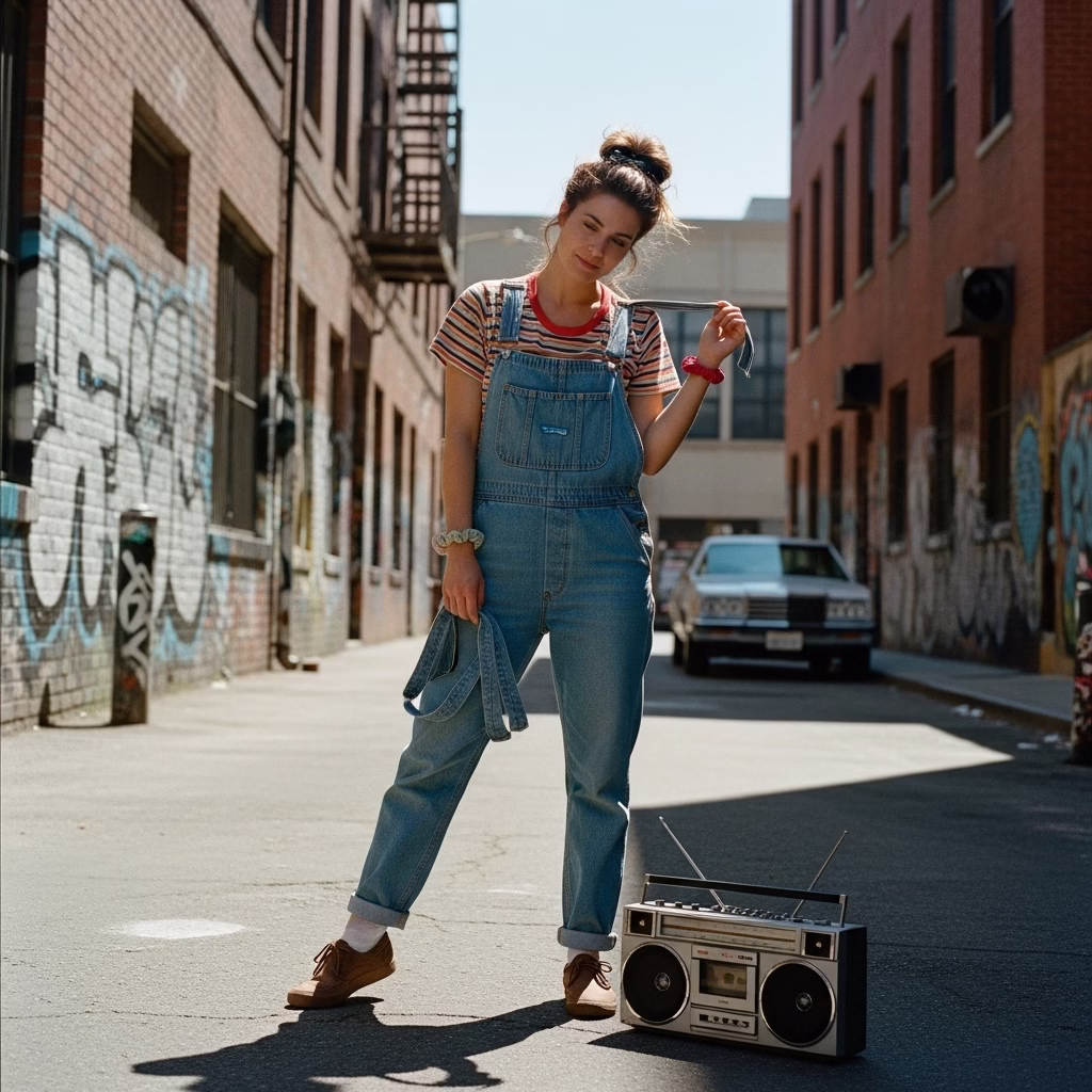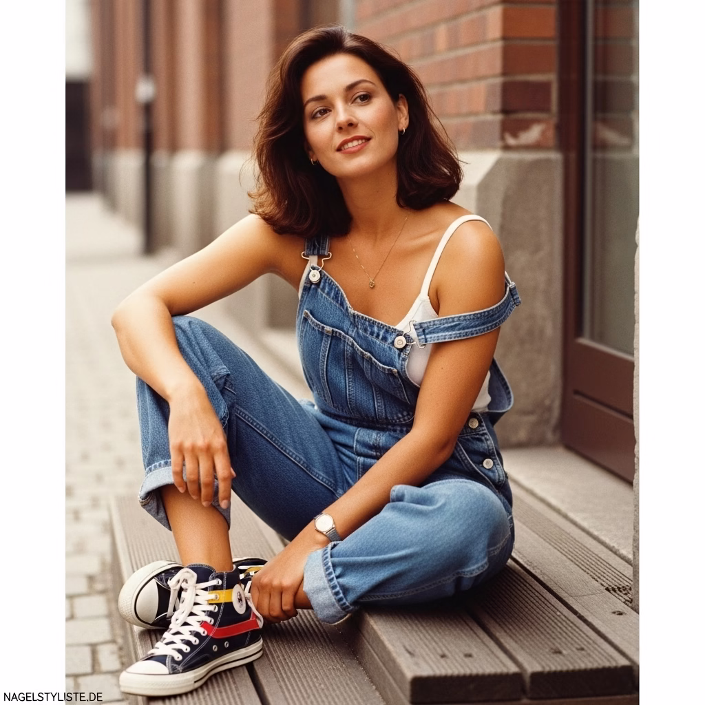 Das 90er Jahre Outfit mit Latzhose lebte von seiner entspannten Wirkung. Es ging nicht um Perfektion, sondern um Haltung. Die Latzhose stand für einen Lebensstil, der Komfort und Persönlichkeit über Konventionen stellte.