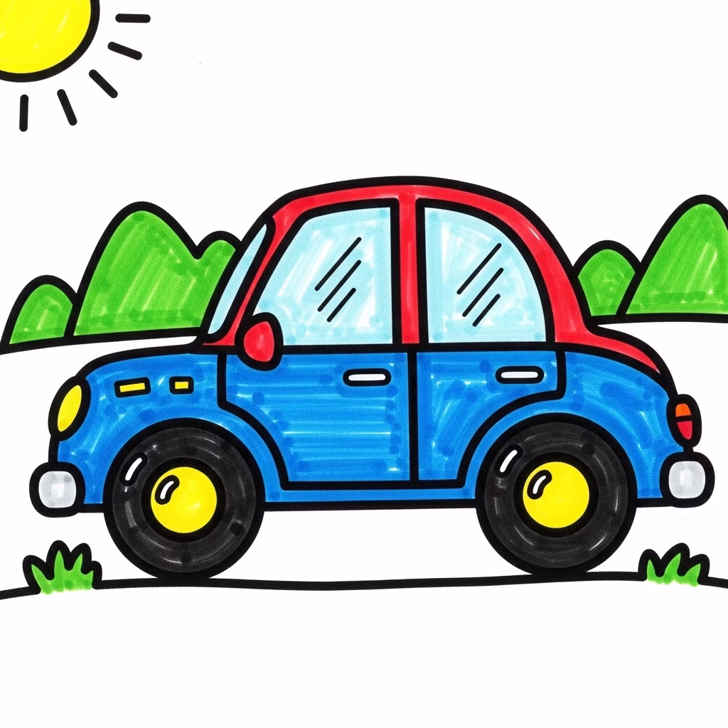 Bei einfachen Auto-Ausmalbildern gibt es keine festen Farbregeln. Autos dürfen rot, blau, grün oder ganz anders sein. Kinder entscheiden selbst, welche Farben sie wählen und wie sie diese einsetzen.