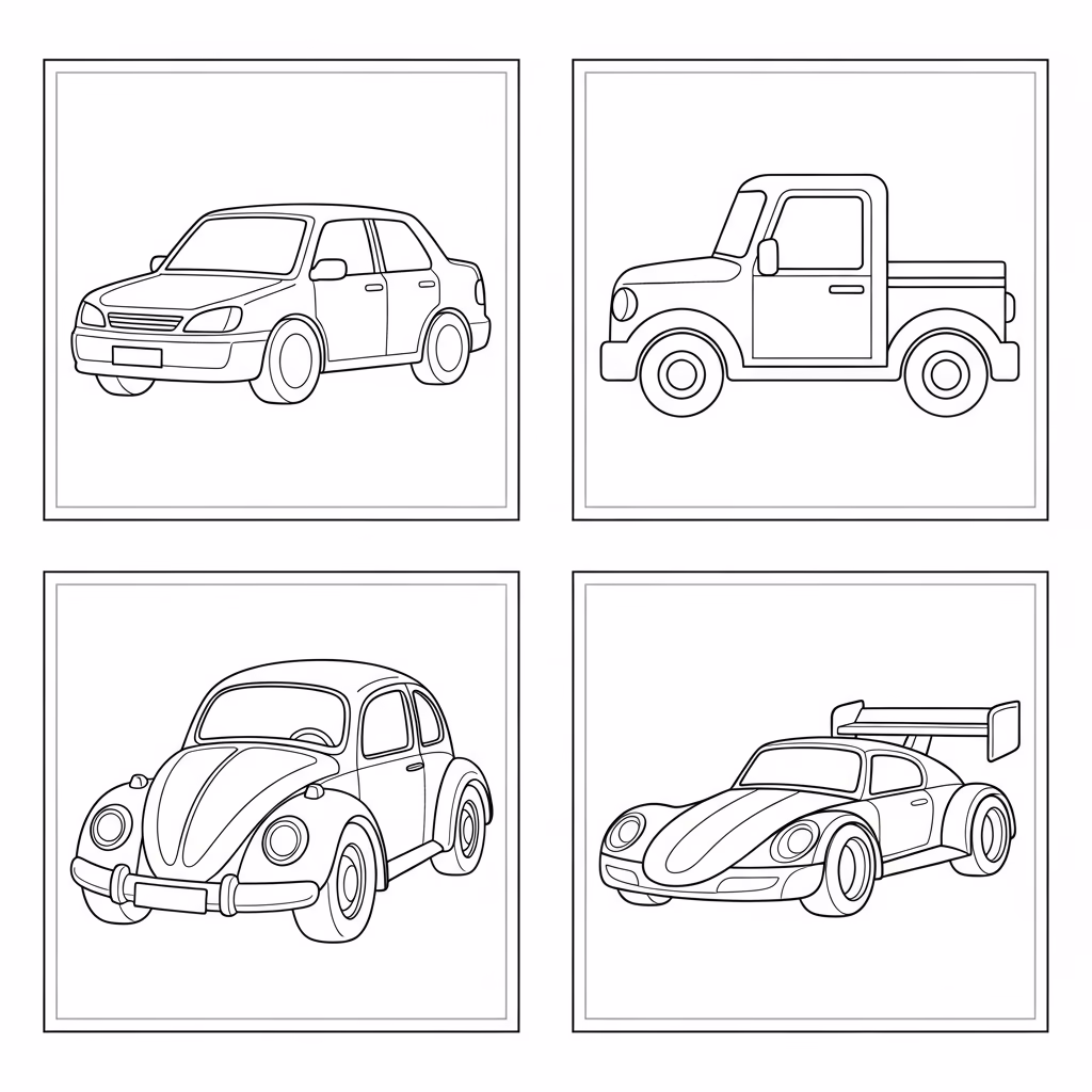 Autos faszinieren viele Kinder unabhängig von Alter oder Persönlichkeit. Ausmalbilder schaffen eine gemeinsame Basis, die verbindet, ohne zu dominieren.