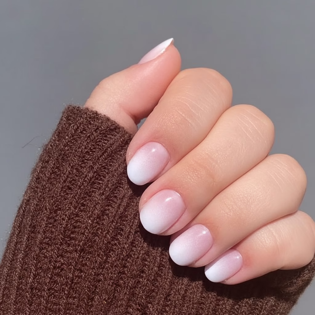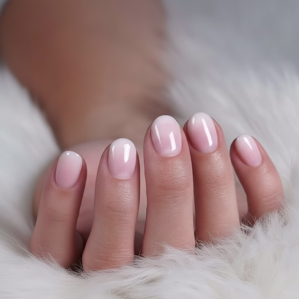 Kurze Nägel mit einem sanften Farbverlauf, der natürlich und elegant wirkt.
