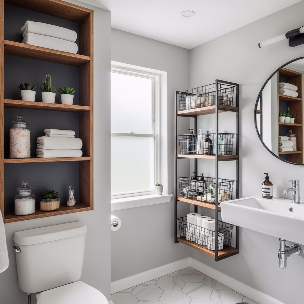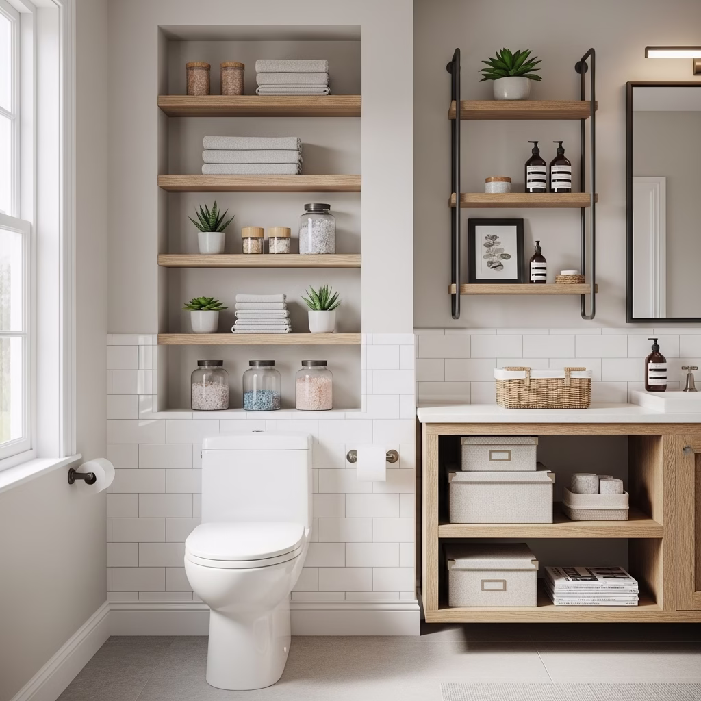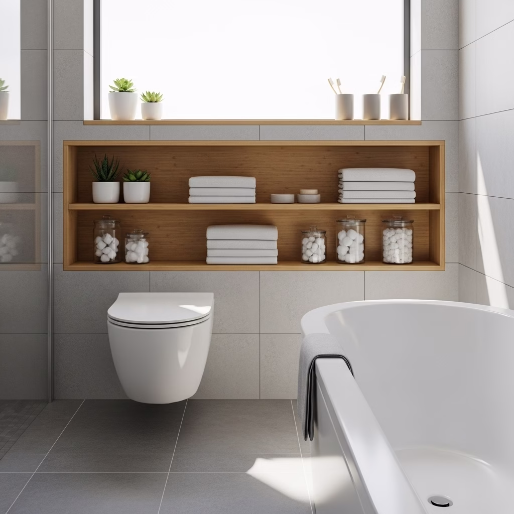 Harmonie zwischen Regal und Sanitärbereich