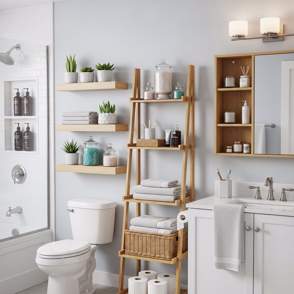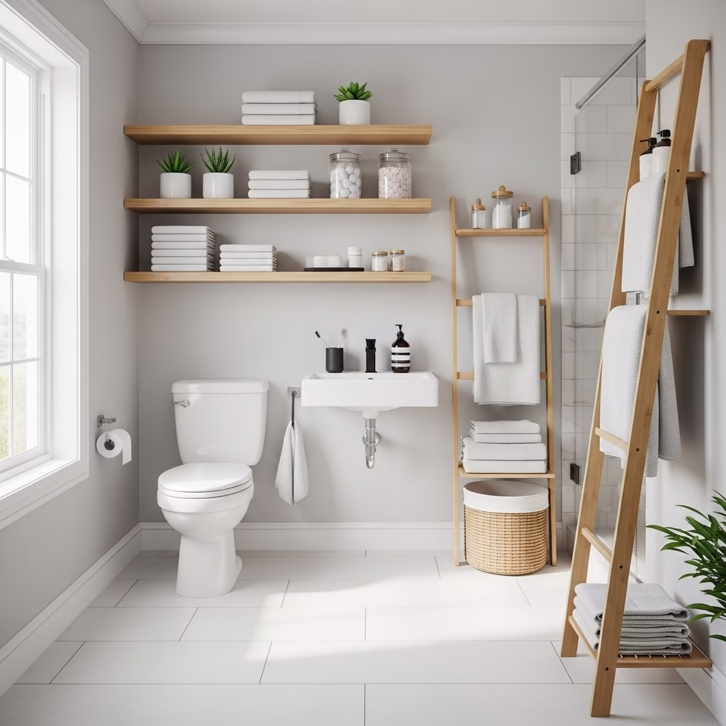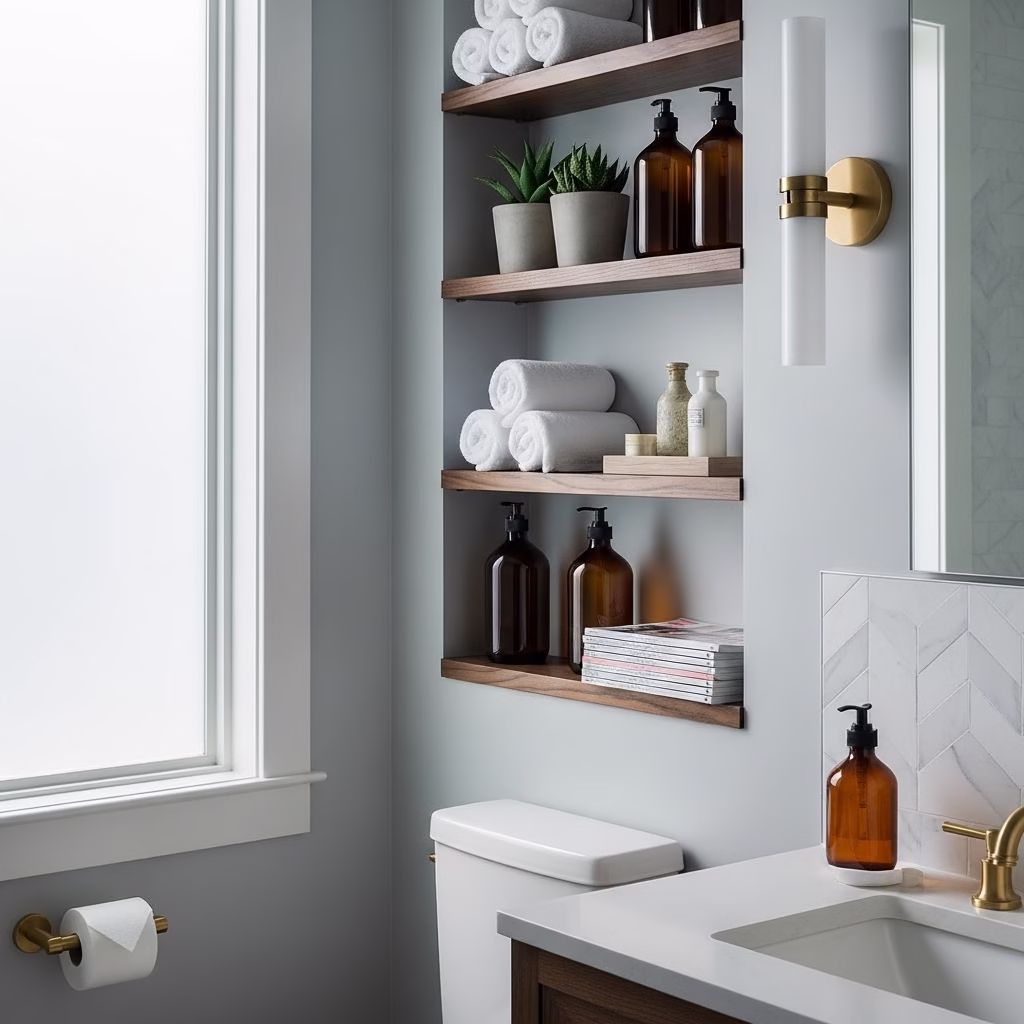 Harmonie zwischen Regal und Sanitärbereich