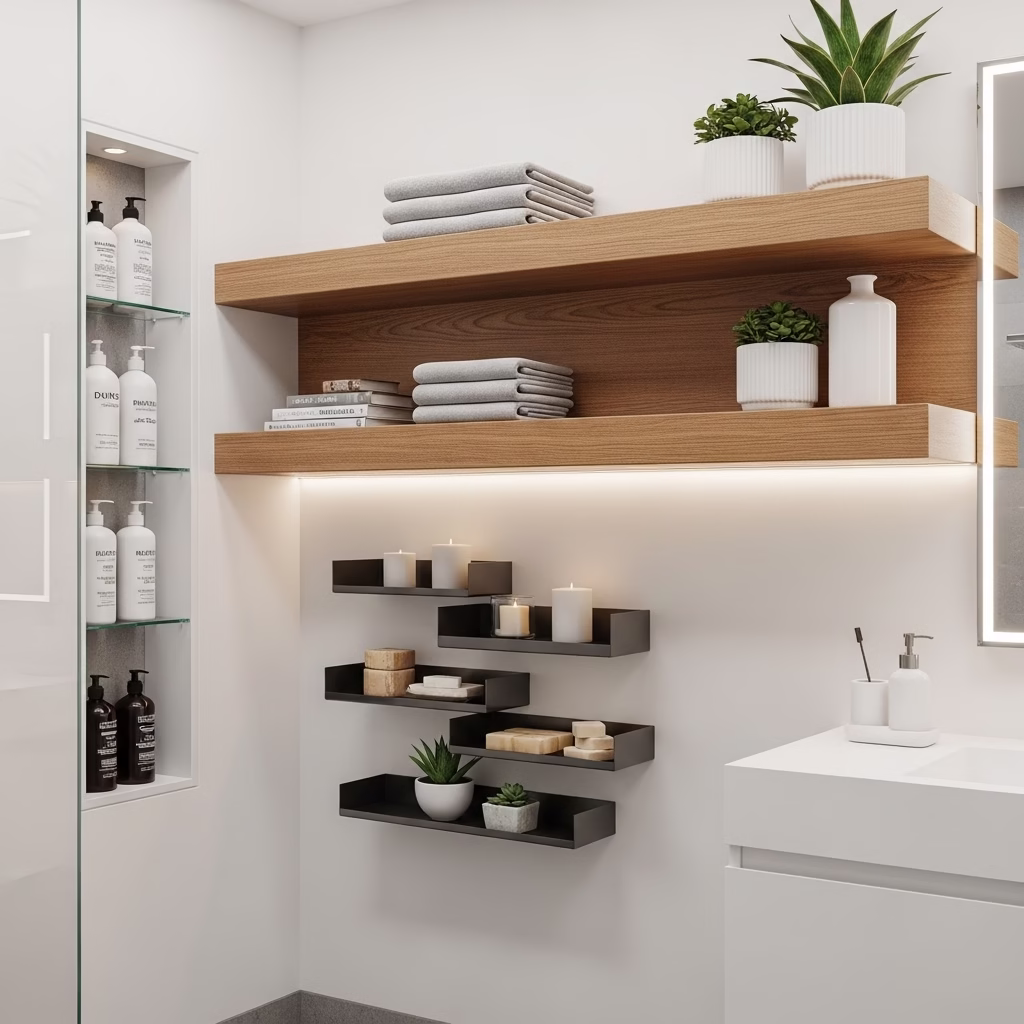 Gerade in kleinen Badezimmern ist die Wahl der Regale entscheidend. Schlanke Designs, klare Linien und zurückhaltende Formen unterstützen ein luftiges Raumgefühl. Weniger Volumen, mehr Wirkung.