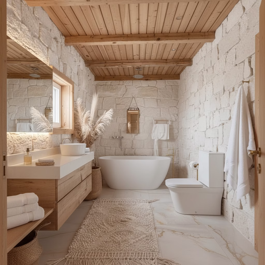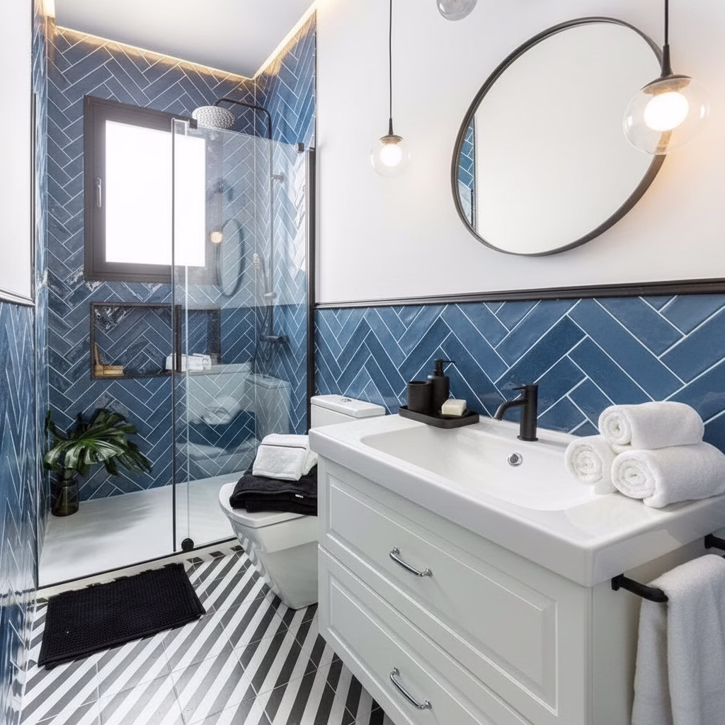 Moderne Badezimmerideen mit Fliesen setzen häufig auf zurückhaltende Farbpaletten, die zeitlos wirken und den Raum nicht dominieren. Die Wirkung entsteht durch Feinheit und Ausgewogenheit statt durch starke Kontraste.