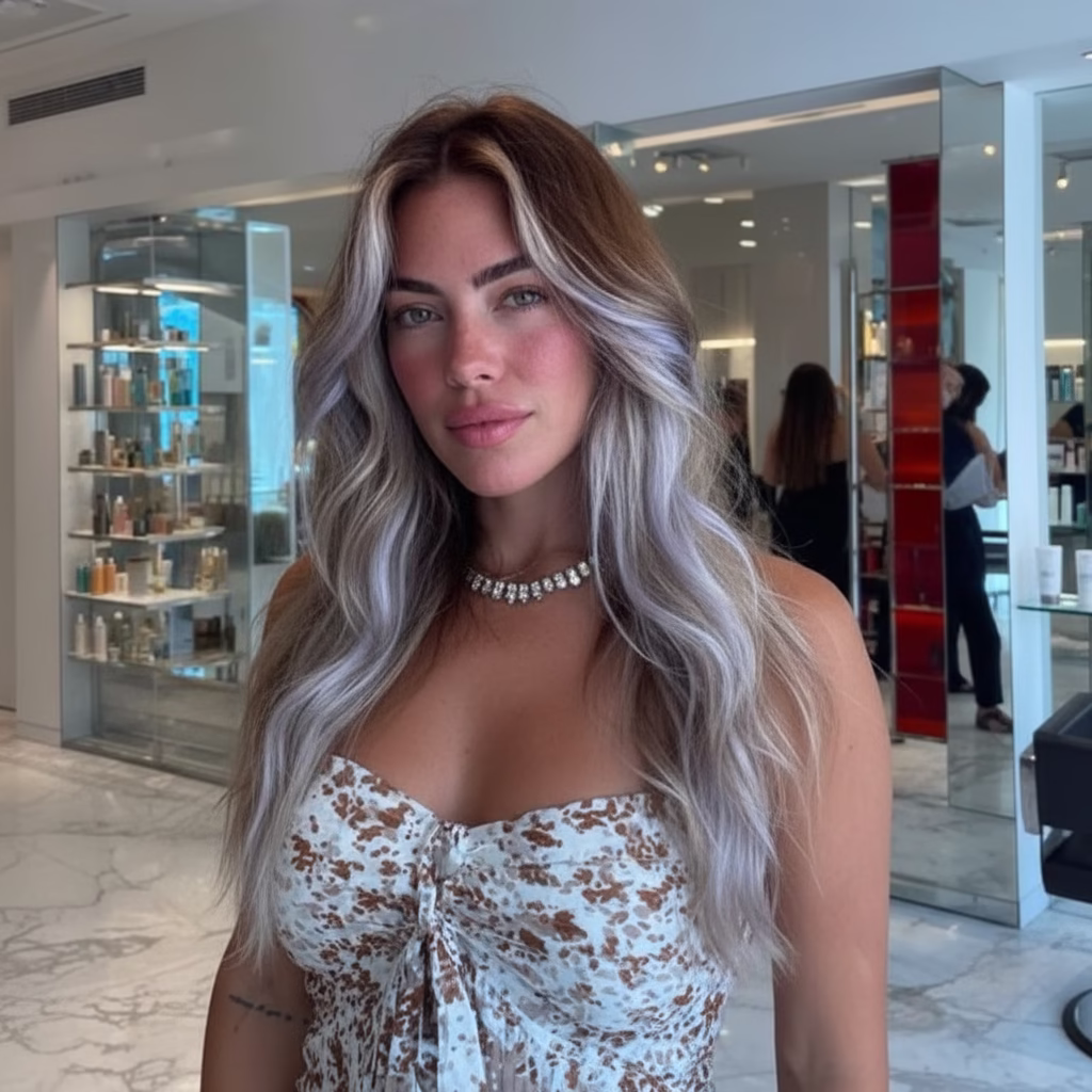 Die kühlen Reflexe verleihen dem Haar Struktur, raffinierte Tiefe und eine edle Klarheit.