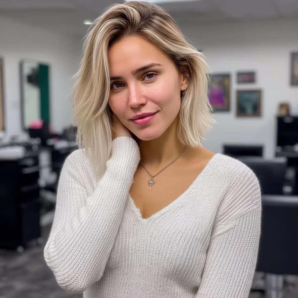 Die Haarfarbe harmoniert wunderbar mit minimalistischen Outfits, sanften Make-up-Tönen oder modernen, klaren Stilrichtungen.