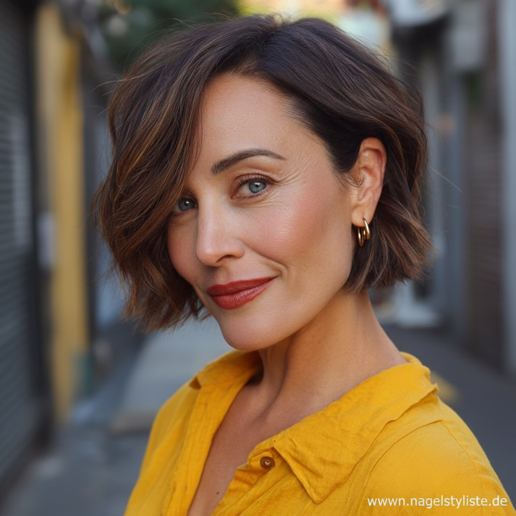 Der Short Bob ist hingegen ideal, um sanfte FarbverlĂ€ufe sichtbar zu machen. Durch die kompakte Form kommen die Highlights besonders gut zur Geltung, und der Bob erhĂ€lt optisch mehr Tiefe und Dynamik. Ob gerade geschnitten, leicht gestuft oder mit Curtain Bangs â Balayage fĂŒgt dem Bob einen luxuriösen Glow hinzu, der das Haar voller und dichter erscheinen lĂ€sst.