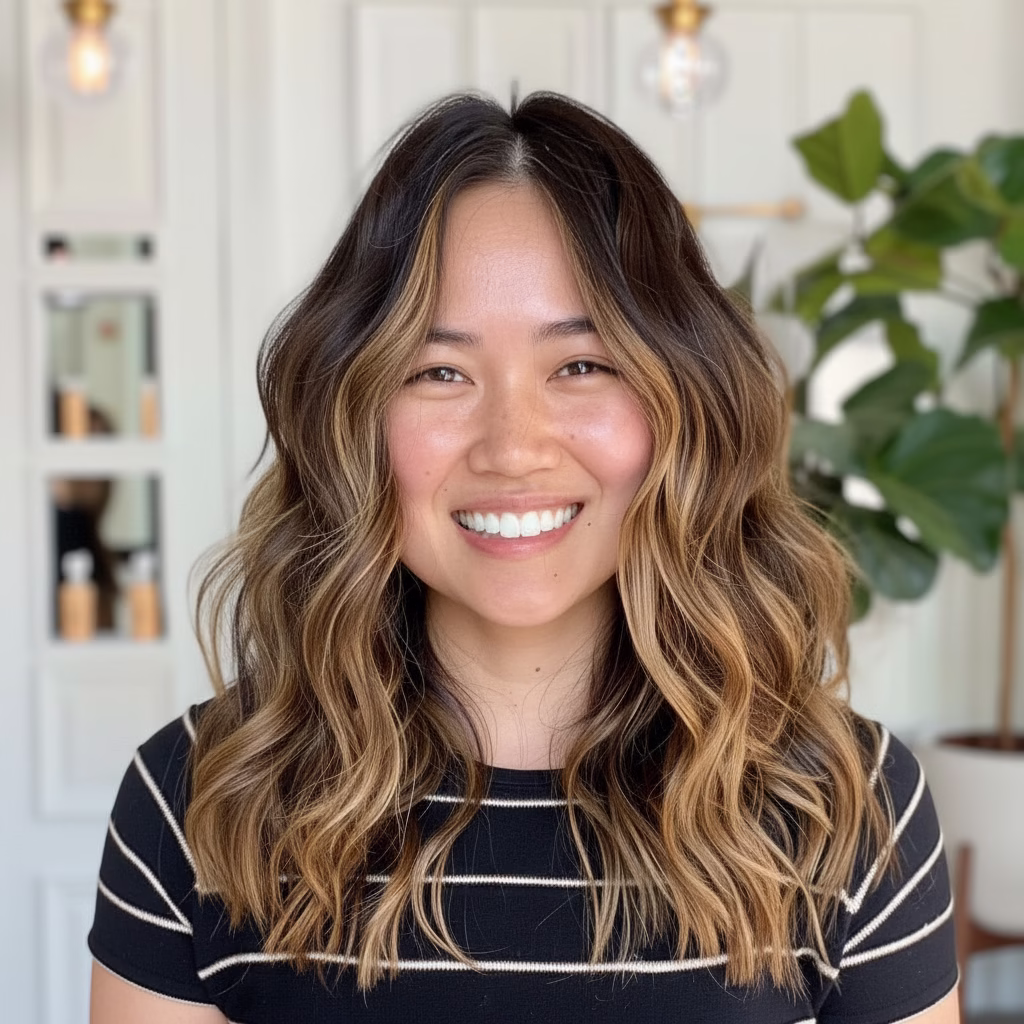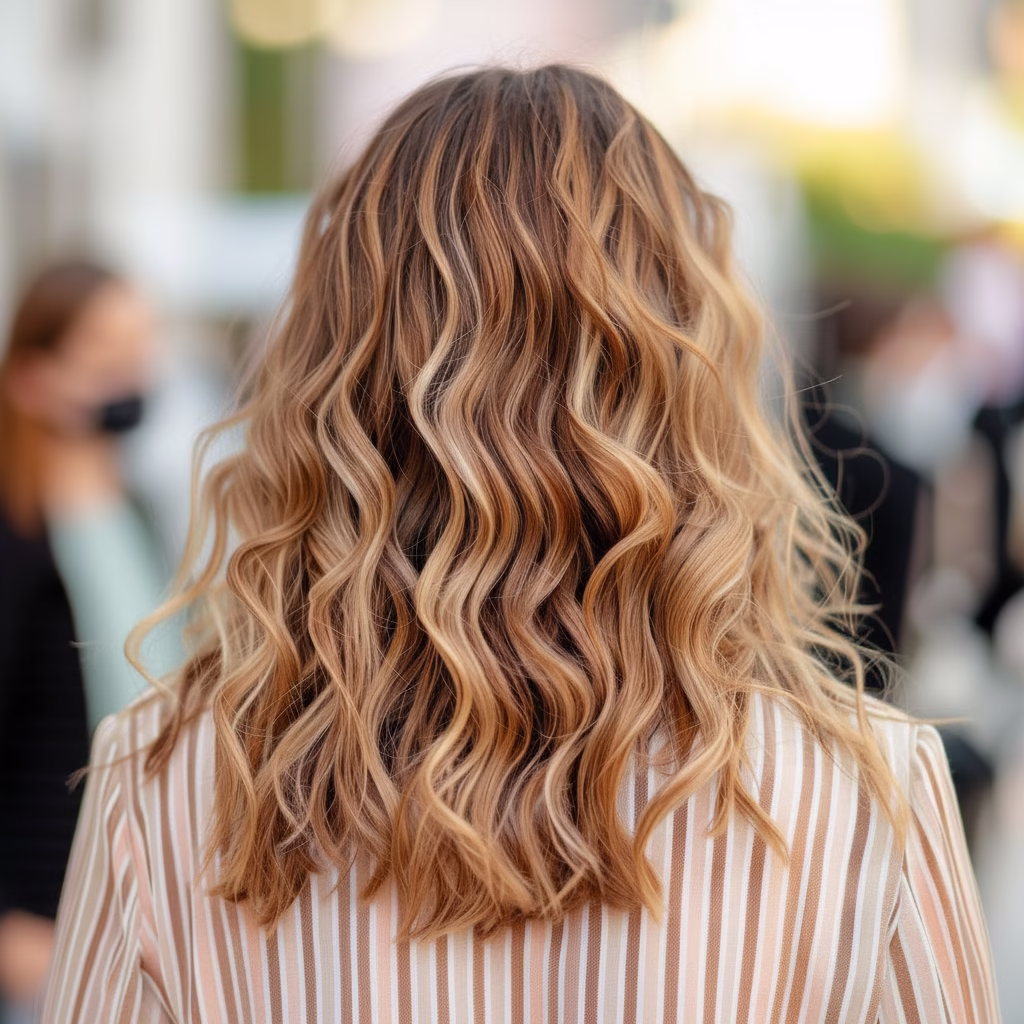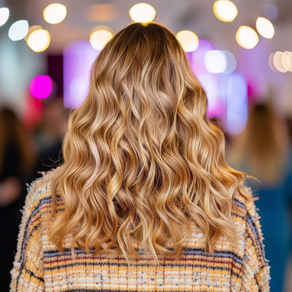 Besonders edel wirken die Waves in Kombination mit glänzenden Farbnuancen, sanften Karamelltönen, blonden Highlights oder kühlen Asch-Nuancen. Diese Farbkombinationen intensivieren die natürliche Bewegung im Haar und lassen die Wellen noch stärker zur Geltung kommen.