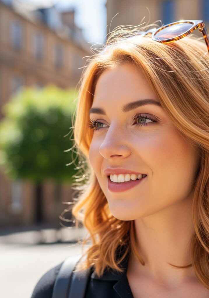 - Braune Augen: Warme Blondtöne wie Gold- oder Karamellblond harmonieren gut mit der Tiefe brauner Augen.