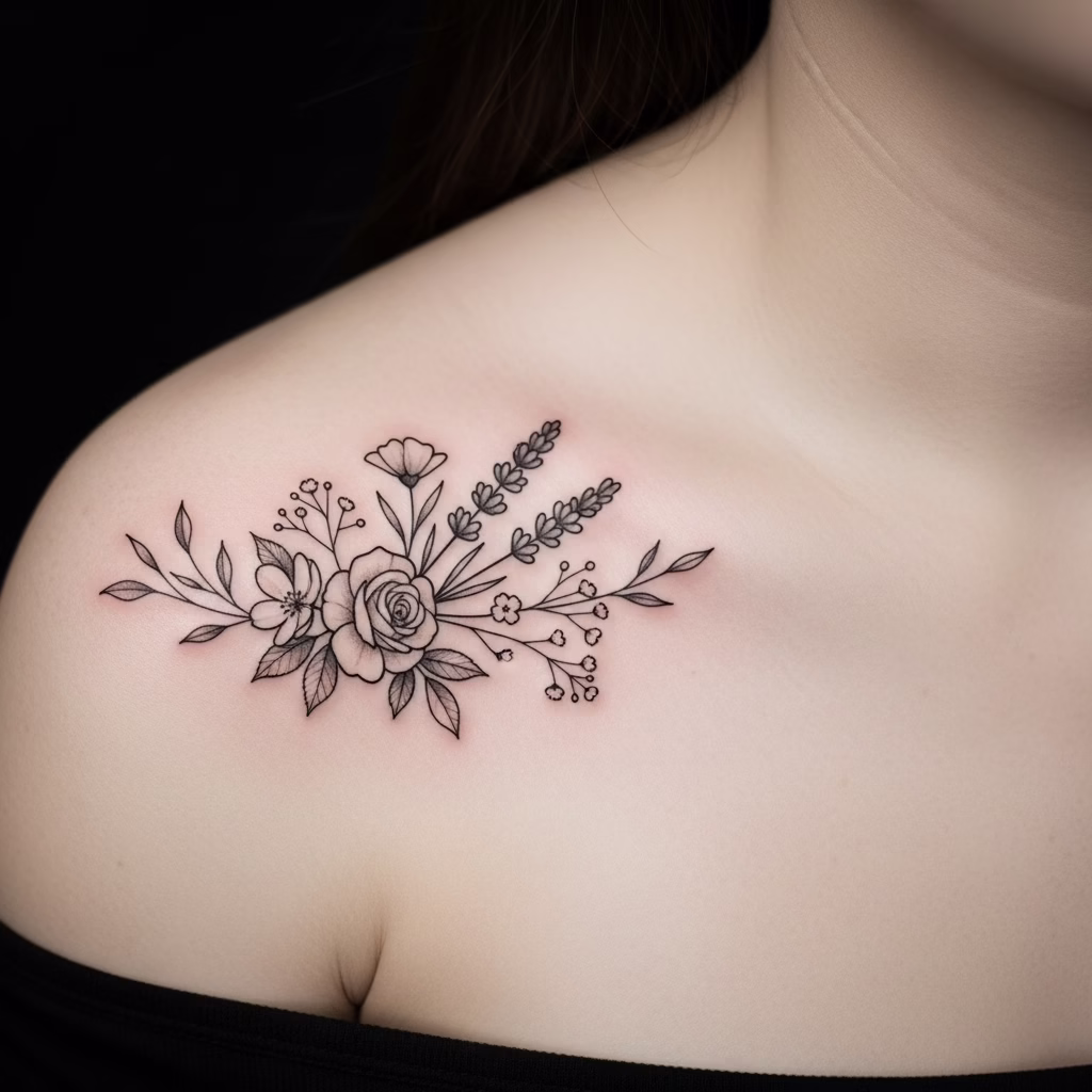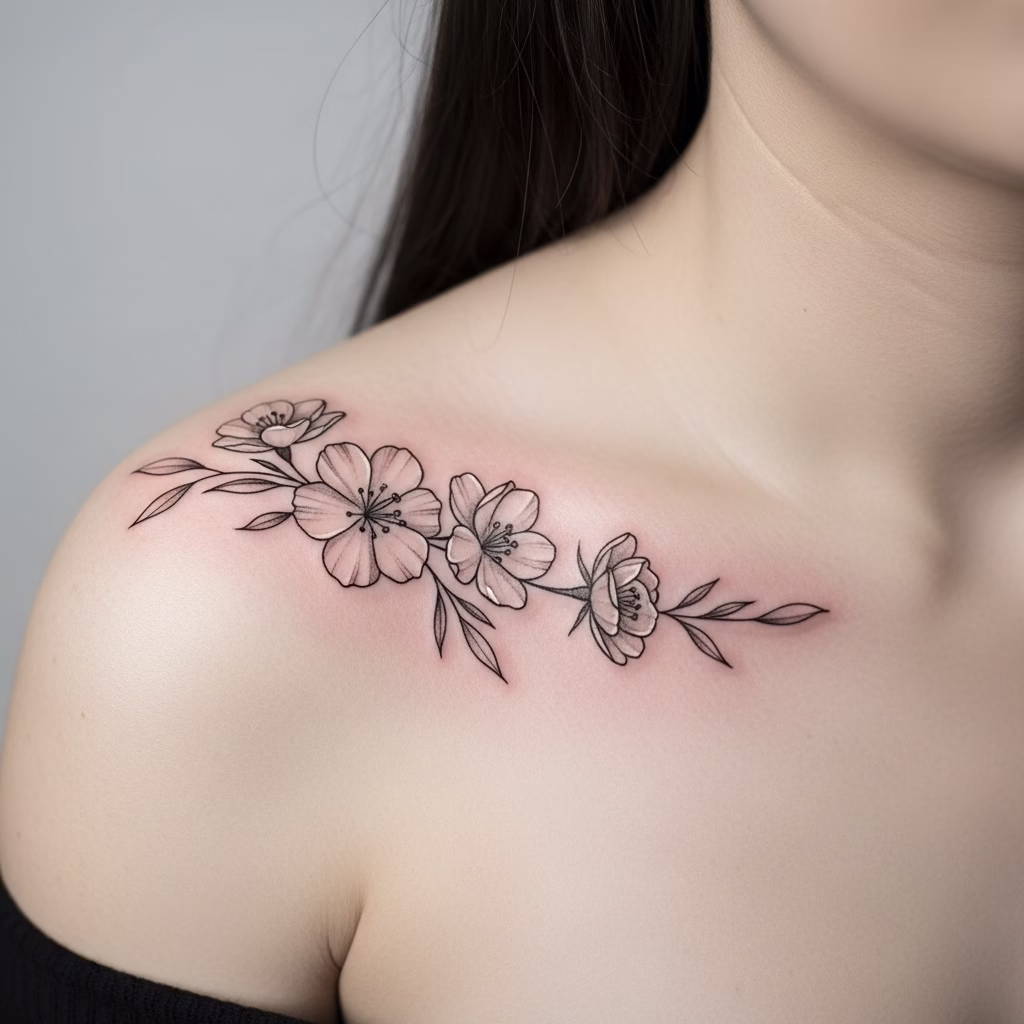 - Florales Brust- oder Schultertattoo – feminin und kraftvoll zugleich.