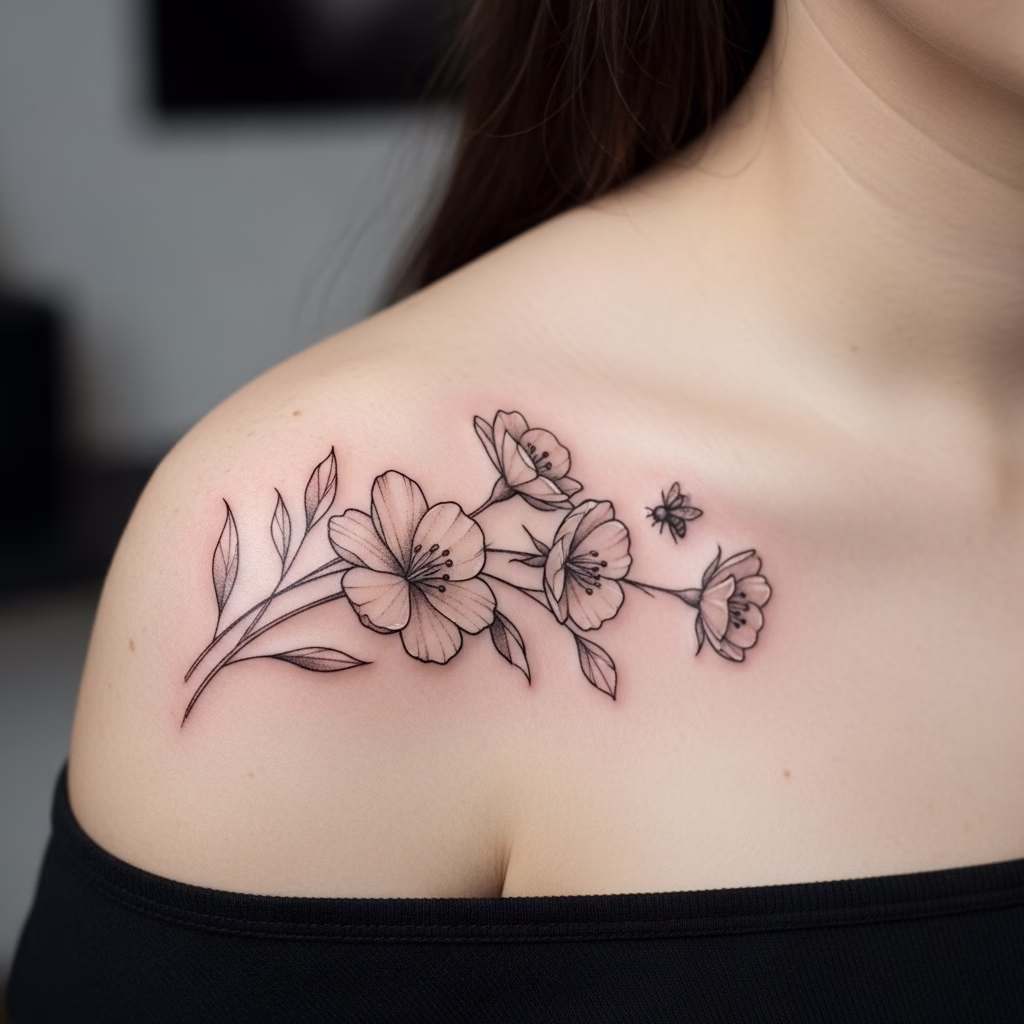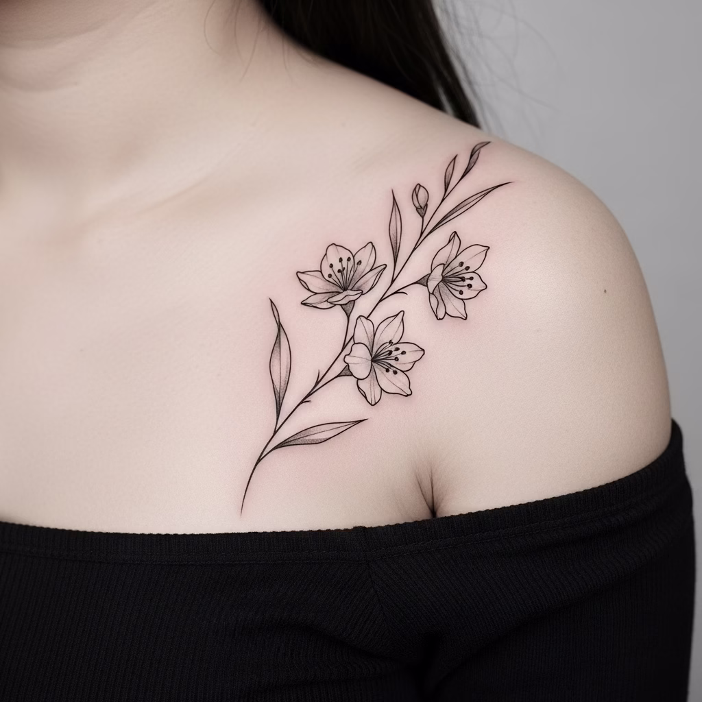 - Minimalistische Tattoos: Weniger ist mehr – kleine Konturen oder einzelne Blüten wirken besonders edel.
