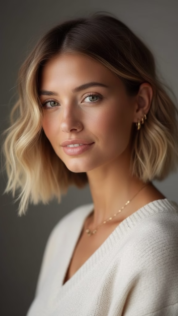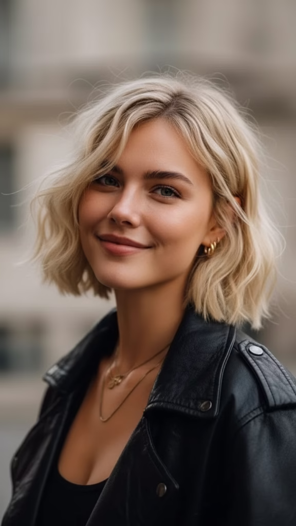 Der blonde Bob für feines Haar verkörpert eine moderne Vorstellung von Natürlichkeit. Er wirkt gepflegt, ohne künstlich zu erscheinen.