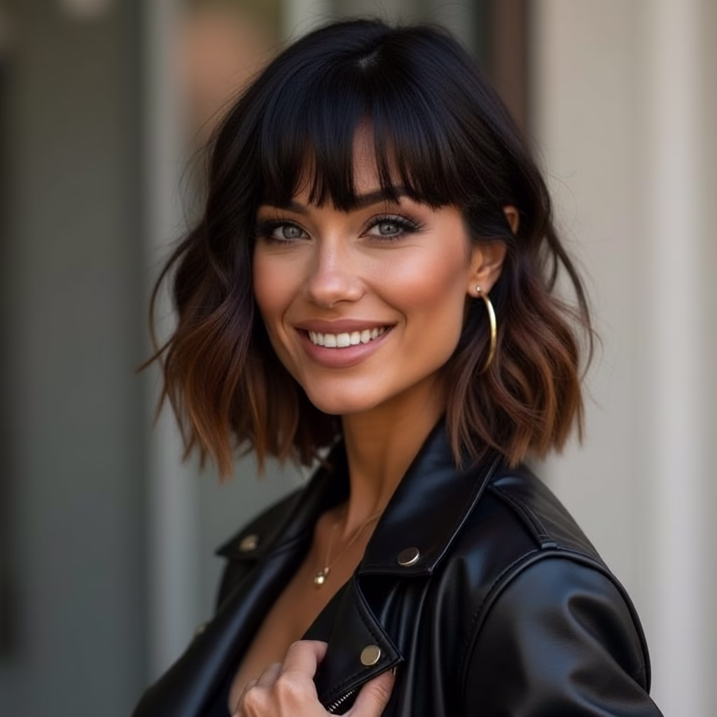 Diese Frisur wirkt souverän und selbstbewusst. Sie zeigt Präsenz, ohne aufdringlich zu sein. Dickes Haar verleiht dem Bob Gewicht, der Pony bringt Fokus. Zusammen entsteht ein Look, der Stärke und Stilbewusstsein ausstrahlt.