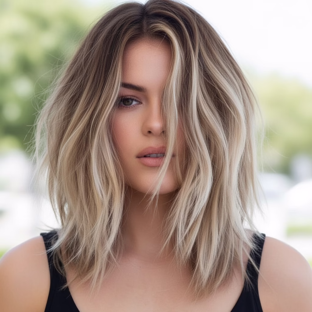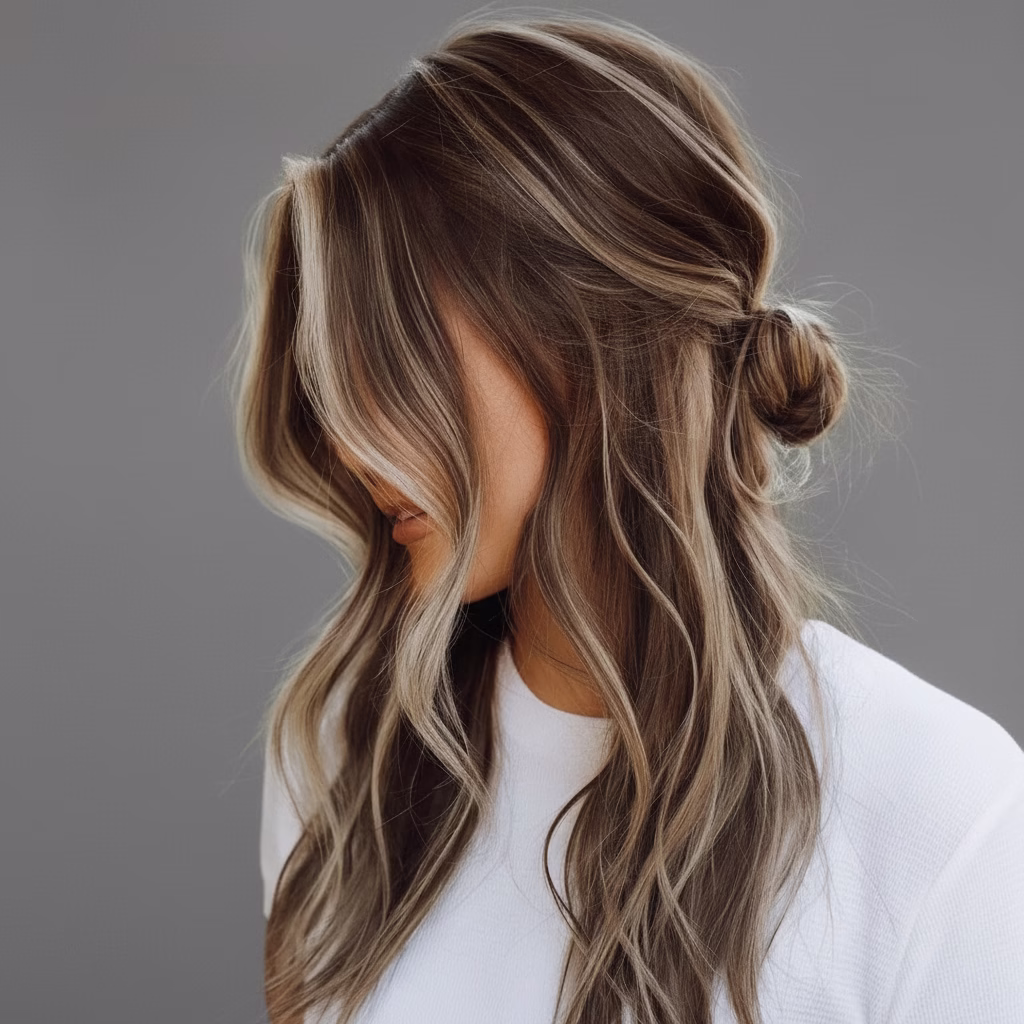 Durch braune Strähnen gewinnt blondes Haar an Lebendigkeit. Die Farbabstufungen wirken organisch und fließend, wodurch die Frisur abwechslungsreicher erscheint. Das Haar wirkt voller und strukturierter.