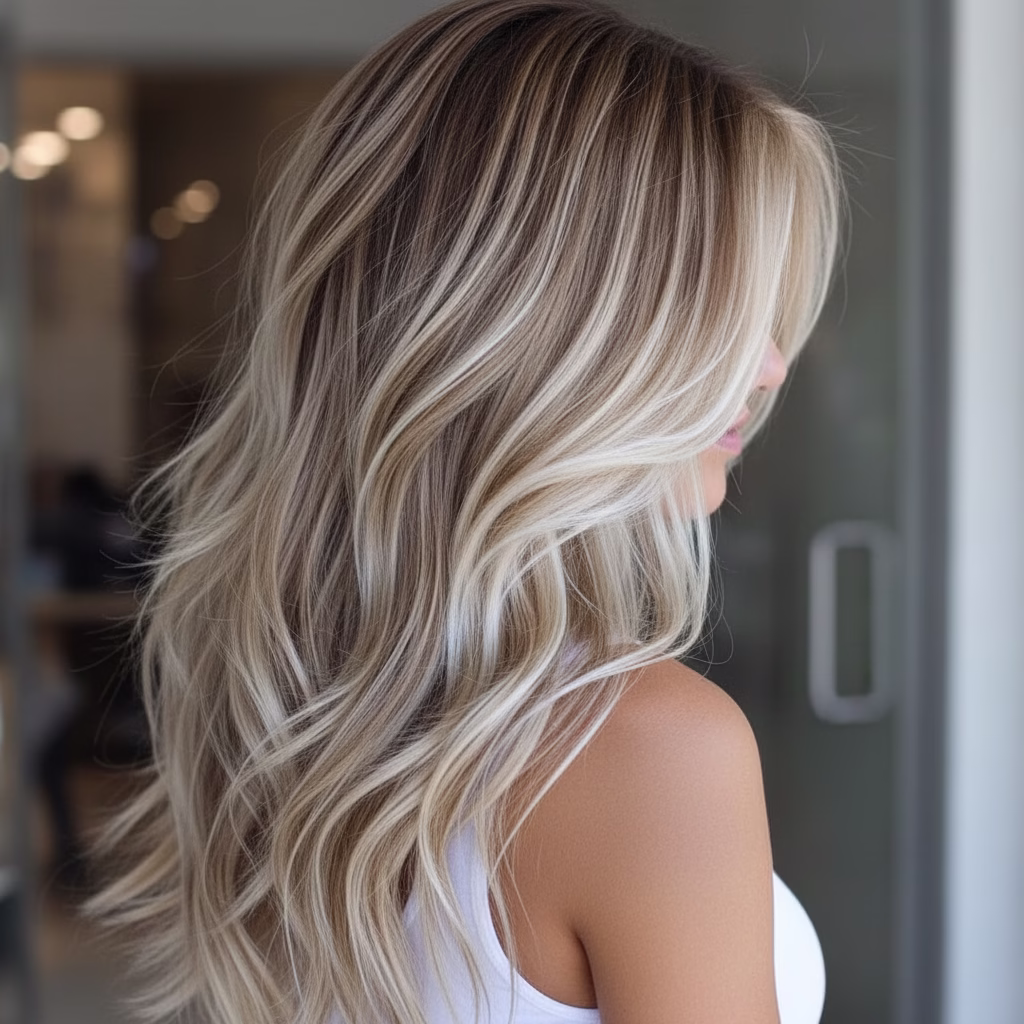 Blondes Haar wirkt oft leicht und weich. Braune Strähnen ergänzen diese Leichtigkeit um visuelle Tiefe. Sie setzen sanfte Kontraste, ohne das Gesamtbild zu dominieren, und verleihen der Frisur mehr Ausdruck.