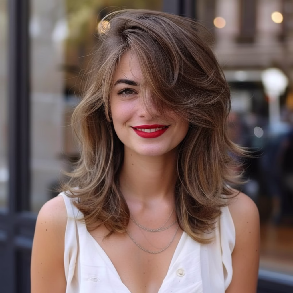 Der Butterfly Cut beeinflusst nicht nur das Haar, sondern auch die Gesamtwirkung des Gesichts. Die fließenden Schichten sorgen für eine sanfte Rahmung und schaffen ein harmonisches Verhältnis zwischen Haar und Gesicht.