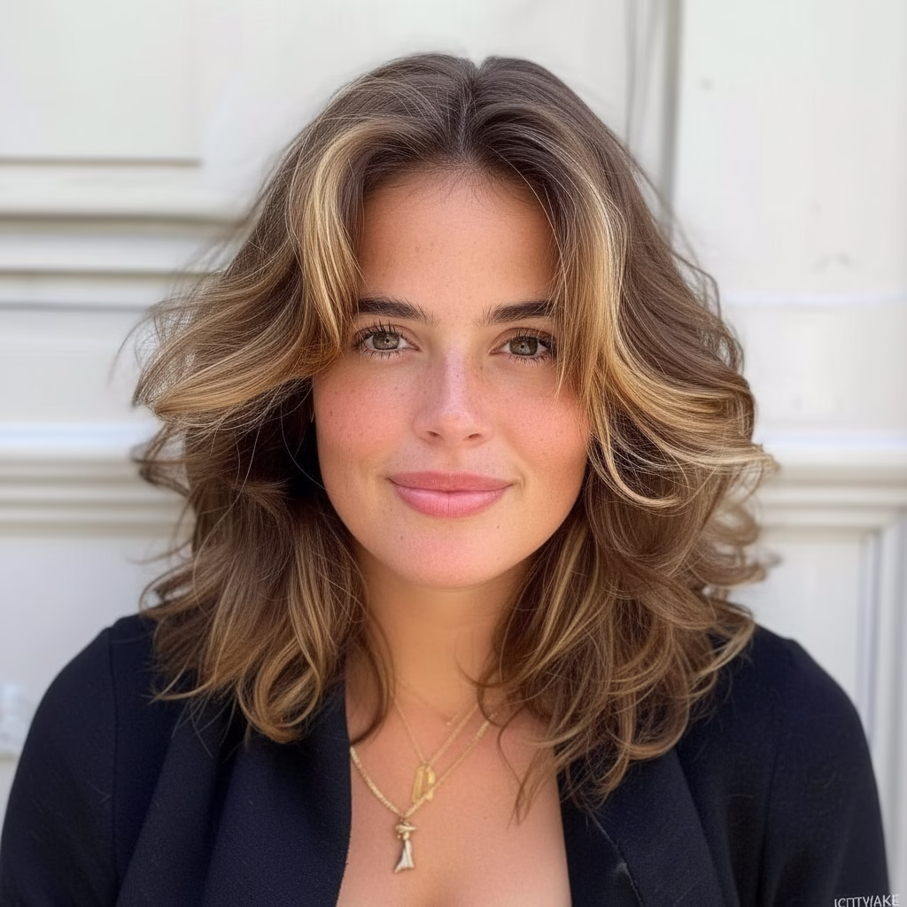 Der Butterfly Haircut lässt sich hervorragend an unterschiedliche Gesichtsformen anpassen. Bei runden Gesichtern sorgen längere Frontpartien für eine streckende Wirkung.