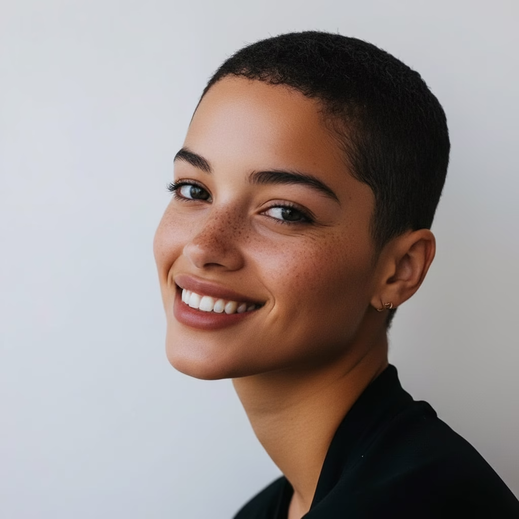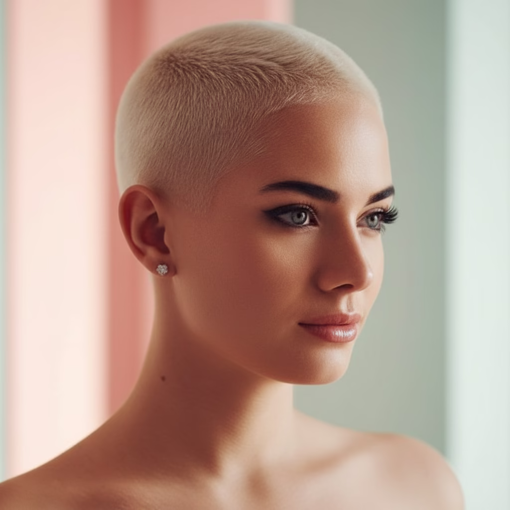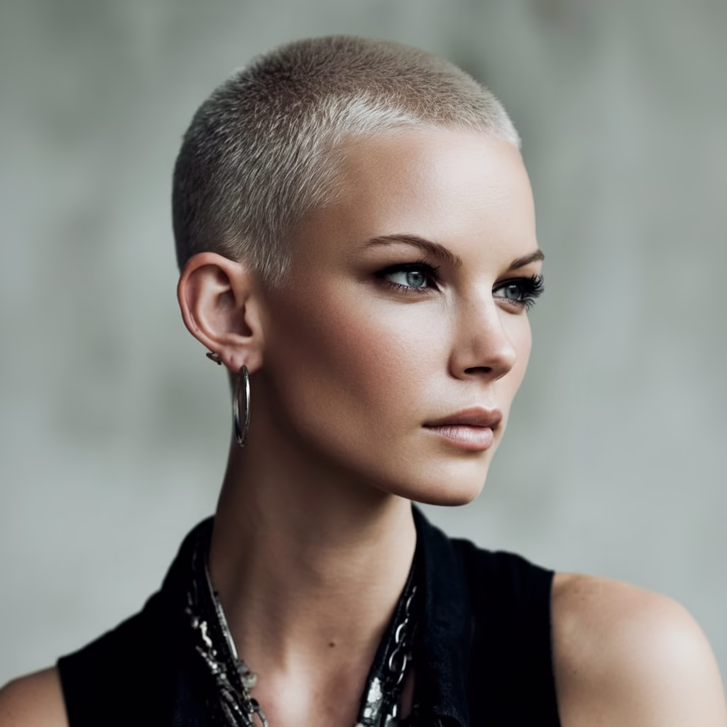 Auch wenn der Buzzcut minimalistisch erscheint, hat er eine enorme Ausdruckskraft. Manchmal sind es gerade die reduzierten Formen, die besonders intensiv wirken. Ohne Ablenkung durch Volumen, Wellen oder Länge tritt die Persönlichkeit in den Vordergrund. Dadurch entsteht ein Look, der gleichzeitig kraftvoll, modern und ausgesprochen authentisch wirkt. Frauen, die sich für diesen Stil entscheiden, zeigen damit Selbstbestimmung und persönliche Stärke – Eigenschaften, die diesen Schnitt zu einem echten Signature-Look machen.