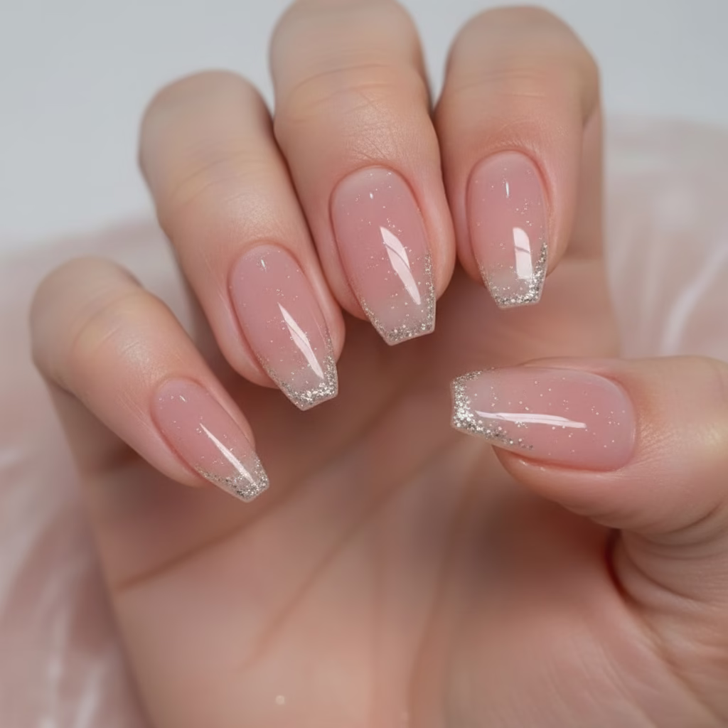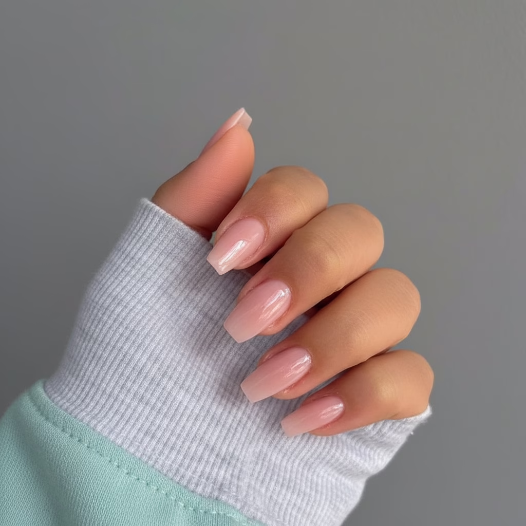 Die charakteristische Coffin-Form zeichnet sich durch gerade Seiten und eine sanft abgeflachte Spitze aus. In kurzer Länge wirkt diese Form kompakt, strukturiert und ausgewogen. Sie verleiht den Händen eine klare Optik, ohne dominant zu erscheinen.