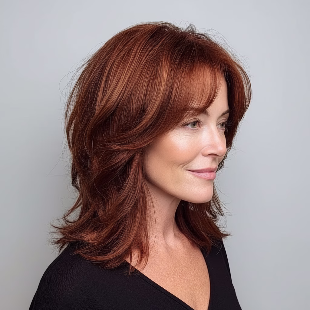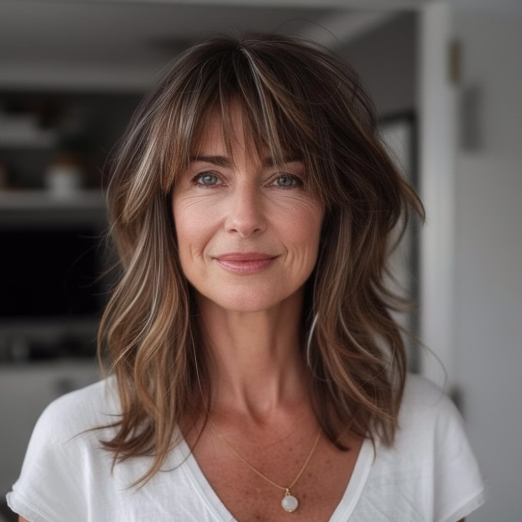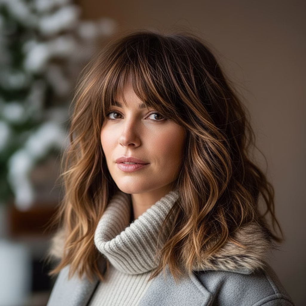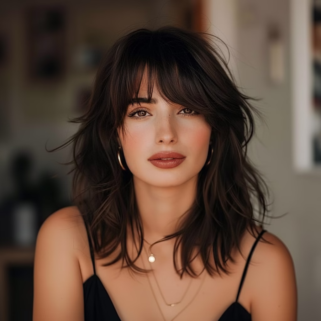 Wer einen modernen Look sucht, der nicht kurzlebig ist, trifft mit Curtain Bangs für mittellanges Haar eine stilvolle Entscheidung mit Zukunft 💖.