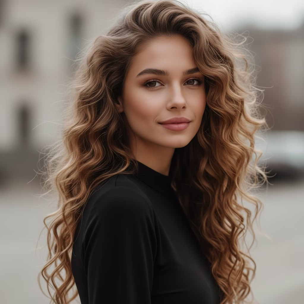 Ein mittellanger Schnitt mit leichten Stufen betont die Bewegung und sorgt für einen femininen Look, während längere Locken voluminös und glamourös erscheinen. Farbtrends wie warme Karamell- oder Honigtöne setzen Locken optimal in Szene.