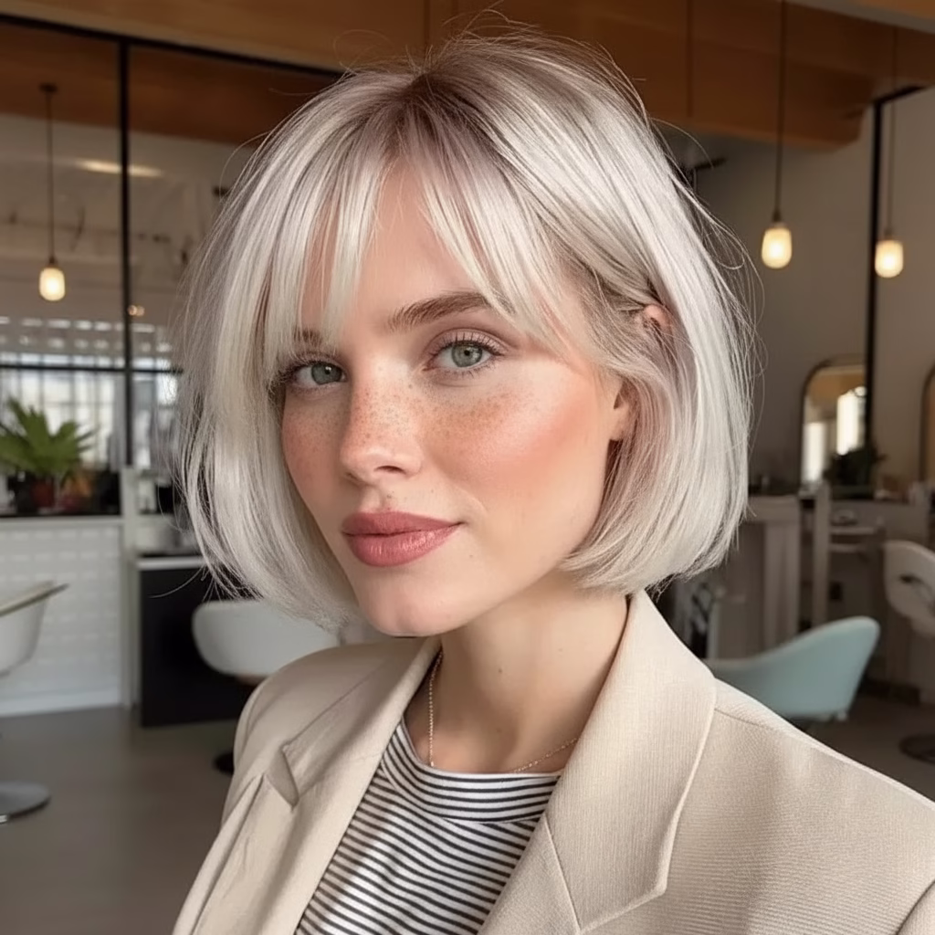Glattes Haar wirkt besonders gepflegt, glänzend und modern. Damenfrisuren für glattes Haar setzen auf klare Linien, definierte Enden und harmonische Konturen. Ein Blunt Cut unterstreicht die Präzision des Schnitts, während ein Long Bob sowohl im Alltag als auch zu besonderen Anlässen stilvoll erscheint.