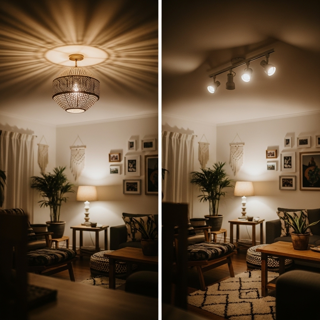 Beide Lichtlösungen erfüllen unterschiedliche Aufgaben. Während die klassische Deckenleuchte für gleichmäßige Helligkeit steht, ermöglicht Spotbeleuchtung gezielte Akzente und flexible Lichtzonen. Die Entscheidung betrifft daher nicht nur die Technik, sondern das gesamte Wohngefühl.