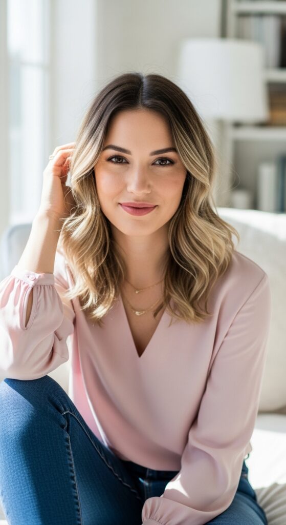 2025 wird mutig â warme Töne wie Kupfer oder RosĂ©gold als subtile Highlights auf dunkelblonde haare setzen ein Statement. Besonders trendig bei einem Long Bob oder Wellen mit Volumen.