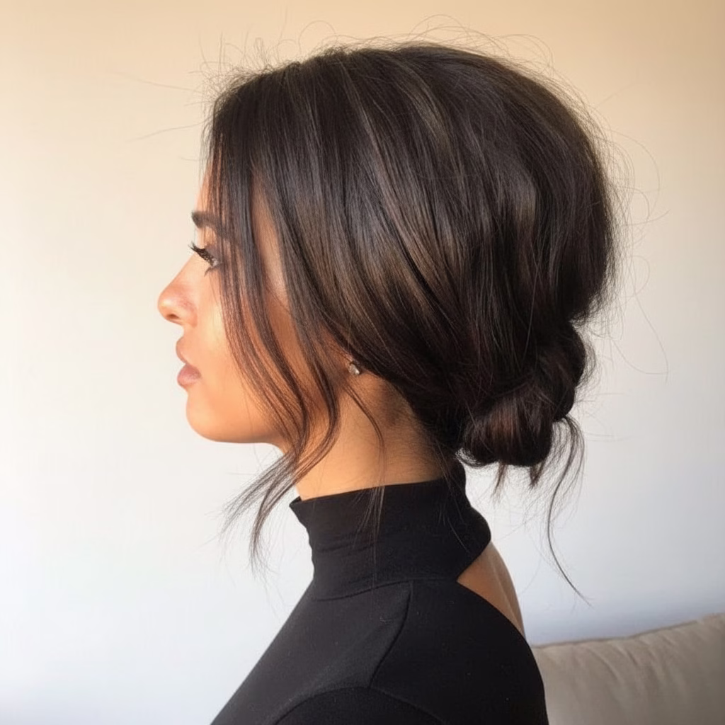 Locker hochgesteckte Haare schaffen Ordnung, ohne die Natürlichkeit zu verlieren. Sie wirken strukturiert, aber nicht steif, und passen sich problemlos unterschiedlichen Tagesabläufen an.