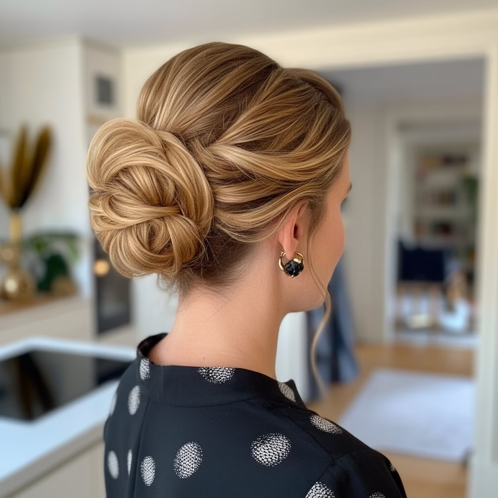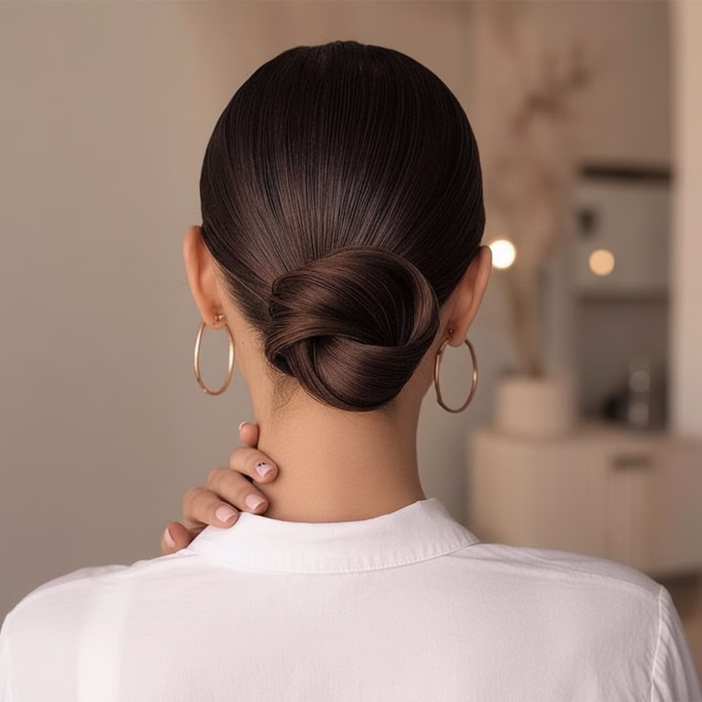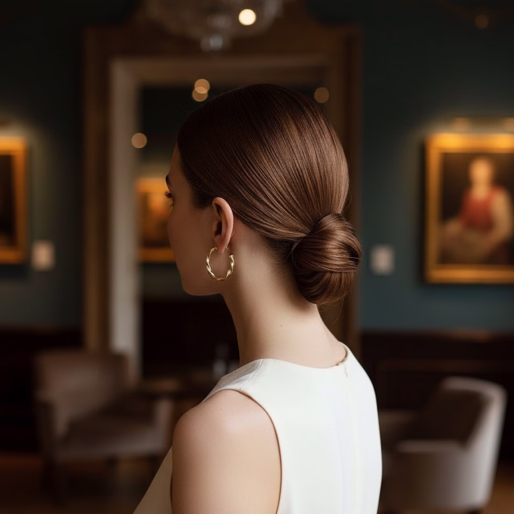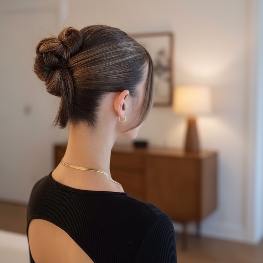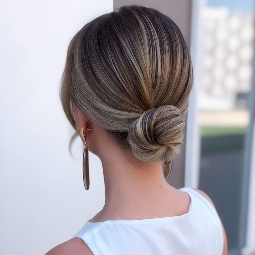 Für den Alltag eignen sich vor allem lockere Dutts, halb hochgesteckte Frisuren, tiefe Pferdeschwanz-Varianten oder minimalistische Knoten. Diese Styles wirken gepflegt, modern und lassen sich problemlos den ganzen Tag tragen.