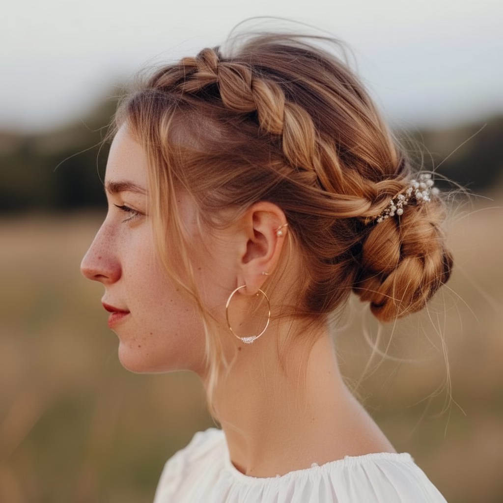 Feminin wirken Hochsteckfrisuren mit weichen Konturen, fließenden Formen und locker fallenden Strähnen. Diese Elemente unterstreichen die natürliche Ausstrahlung und sorgen für ein harmonisches Gesamtbild.