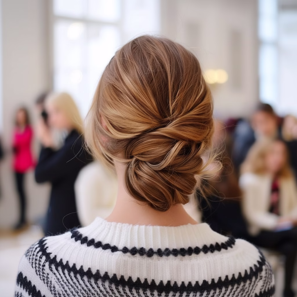 Zu festlichen Anlässen passen klassische Hochsteckfrisuren mit weicher Struktur, elegante Knoten im Nacken oder raffinierte Twist-Varianten. Dezente Details verleihen dem Look Eleganz, Raffinesse und einen hochwertigen Charakter.