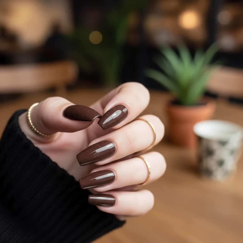 Espresso Nails stehen für einen bewussten Bruch mit kurzlebigen Trends. Sie setzen auf Tiefe, Wärme und Ästhetik. Der Look wirkt erwachsen, stilvoll und absolut zeitlos.