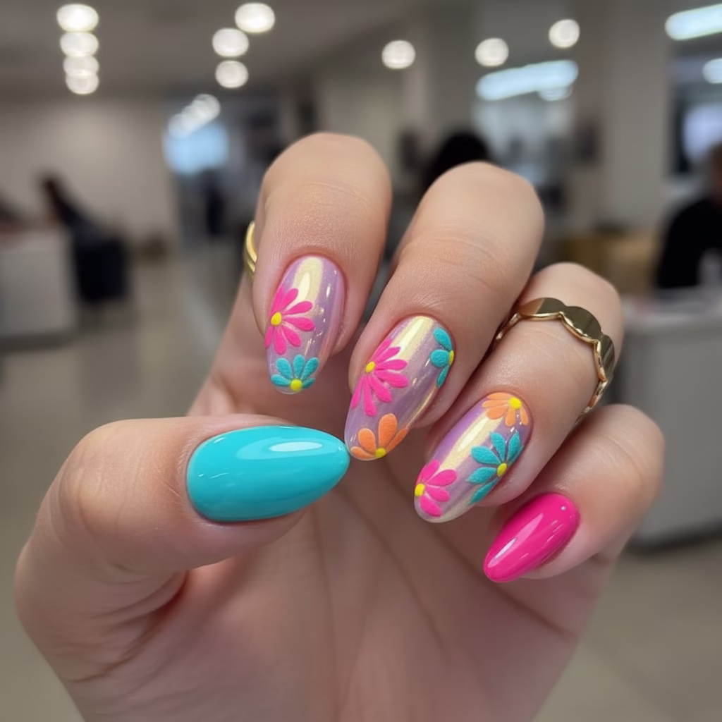 Farbige Nägel im Sommer stehen für Leichtigkeit, Frische und lebendige Ästhetik, die zur warmen Jahreszeit passt.