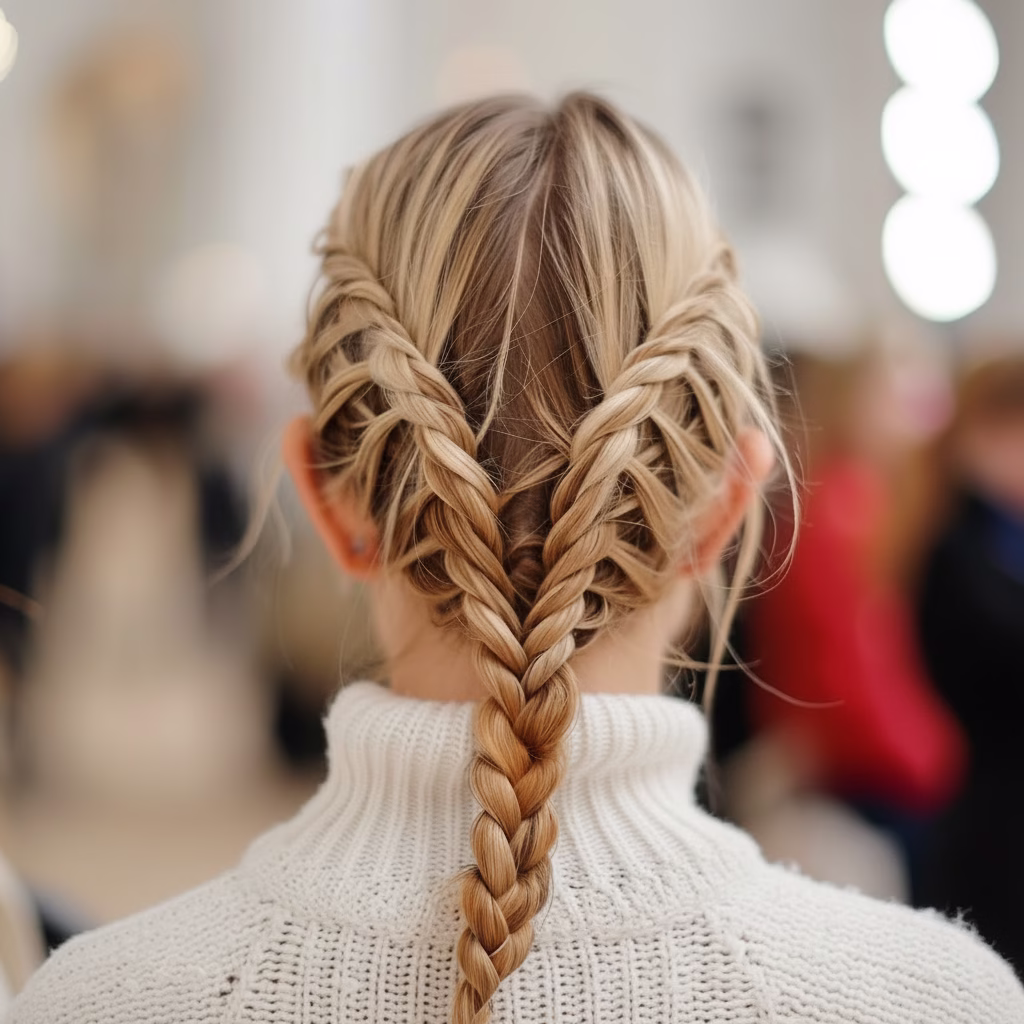 Der Fischgrätenzopf wirkt zeitlos, weil er eine außergewöhnliche Mischung aus Struktur und Weichheit besitzt. Seine filigrane Flechttechnik erzeugt einen visuellen Rhythmus, der sowohl glamourös als auch natürlich aussieht.