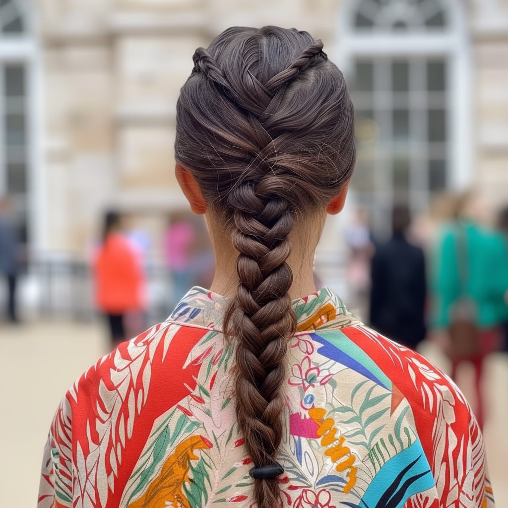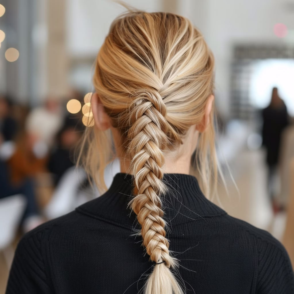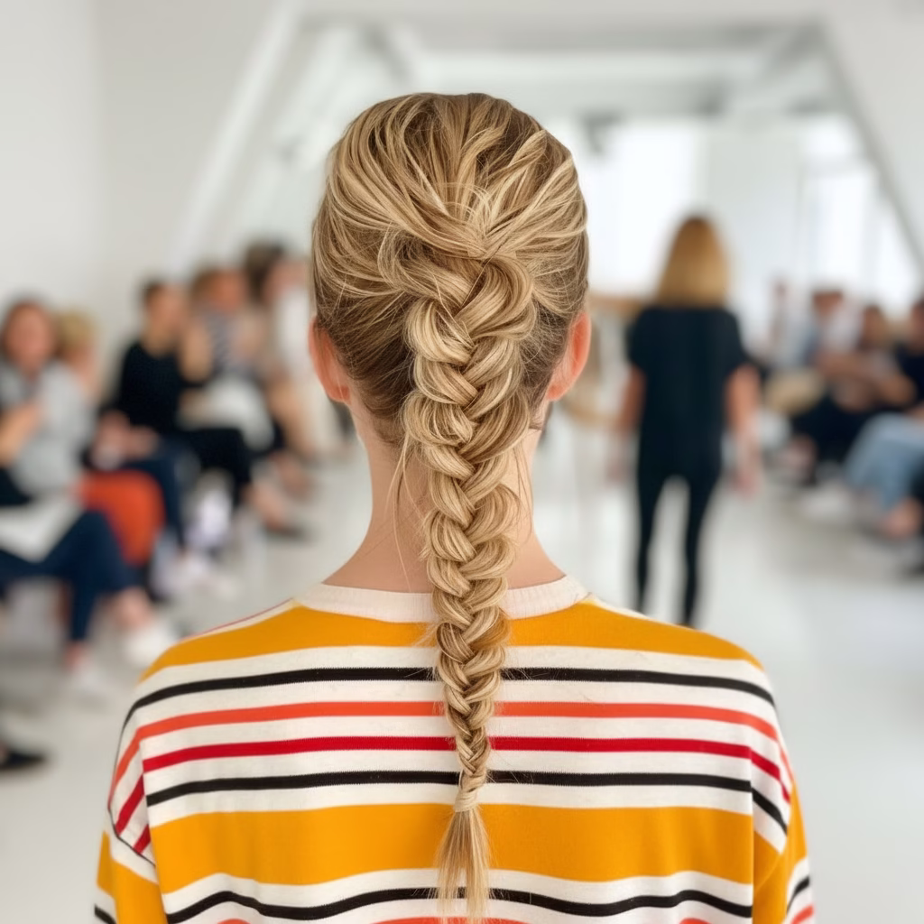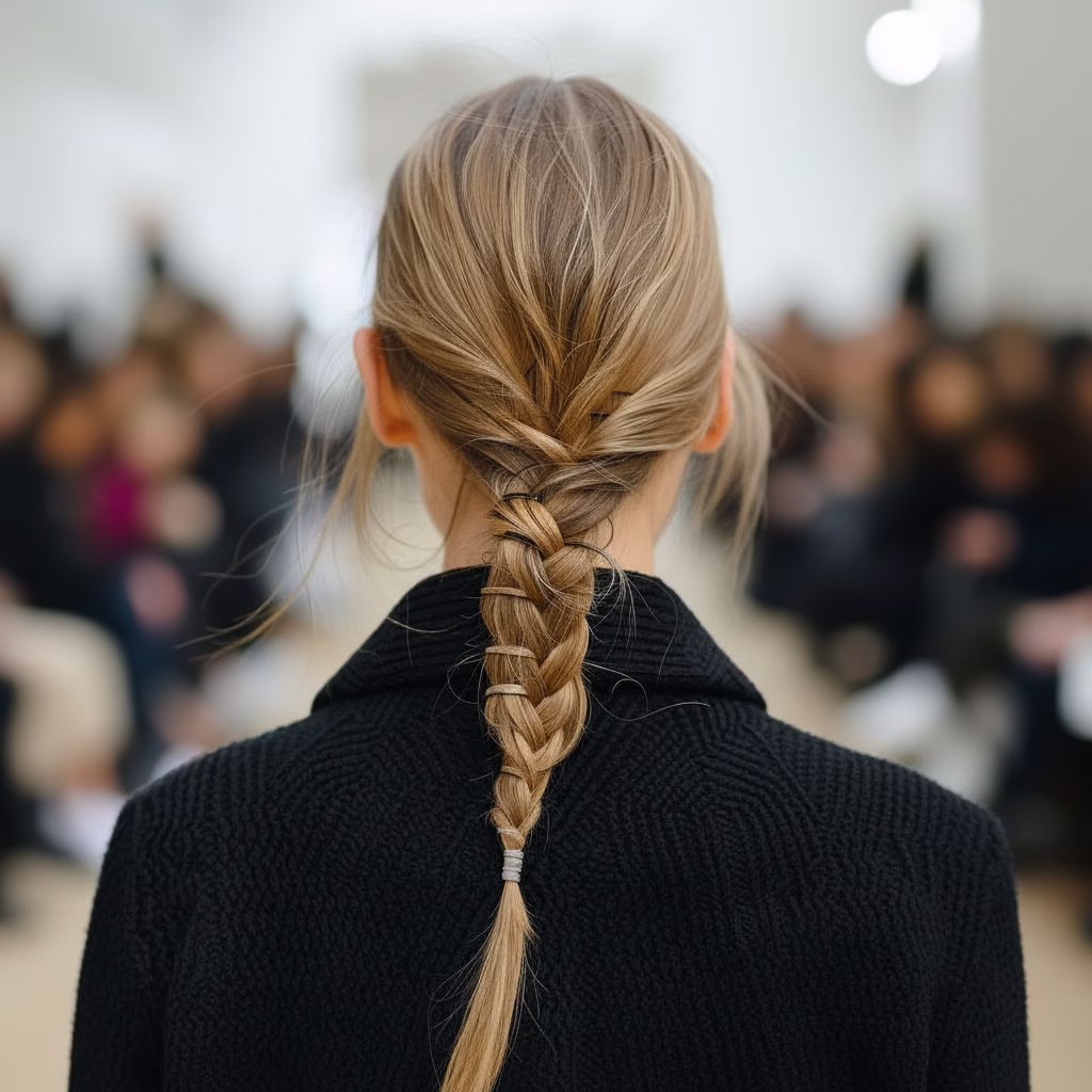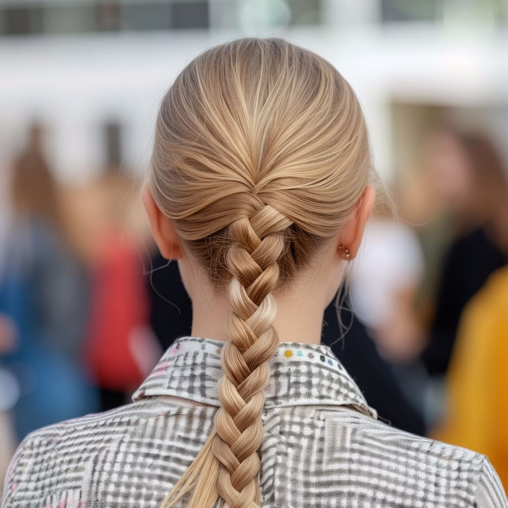 Ein eng geflochtener Zopf schärft die Konturen und wirkt besonders elegant zu symmetrischen Gesichtszügen, kantigen Jawlines oder markanten Wangenknochen.