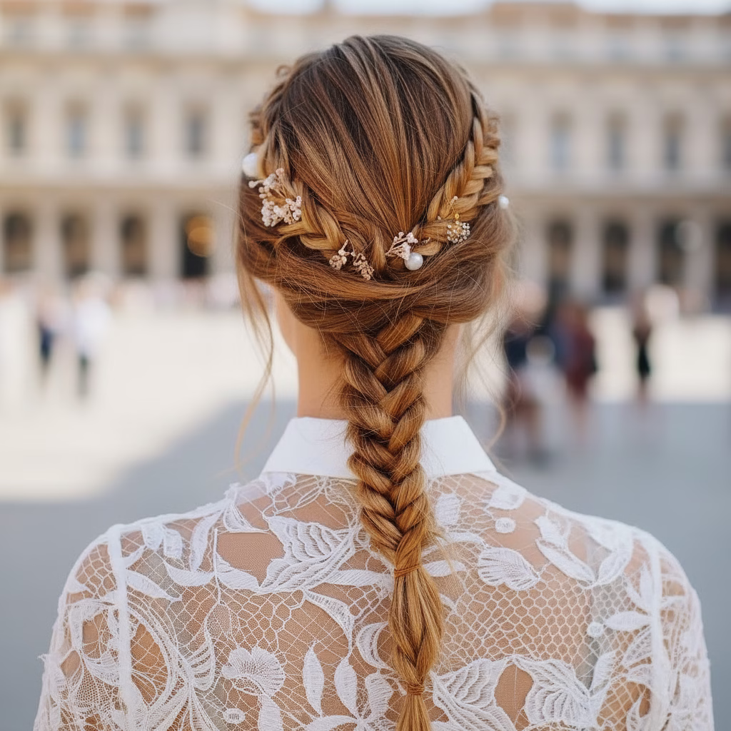 Der Zopf wird besonders häufig mit Begriffen wie Boho Chic, Romantik Style, Hochzeitsfrisuren, Flechtklassiker, Trendfrisuren 2025 und Natural Elegance in Verbindung gebracht.