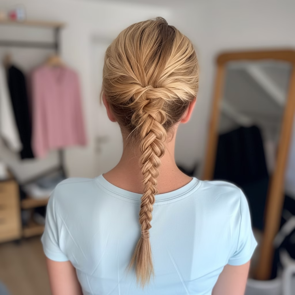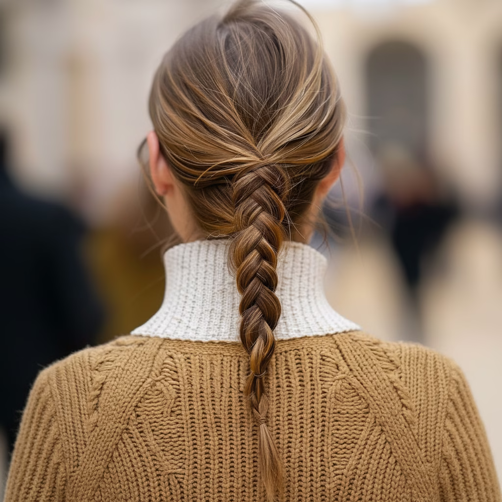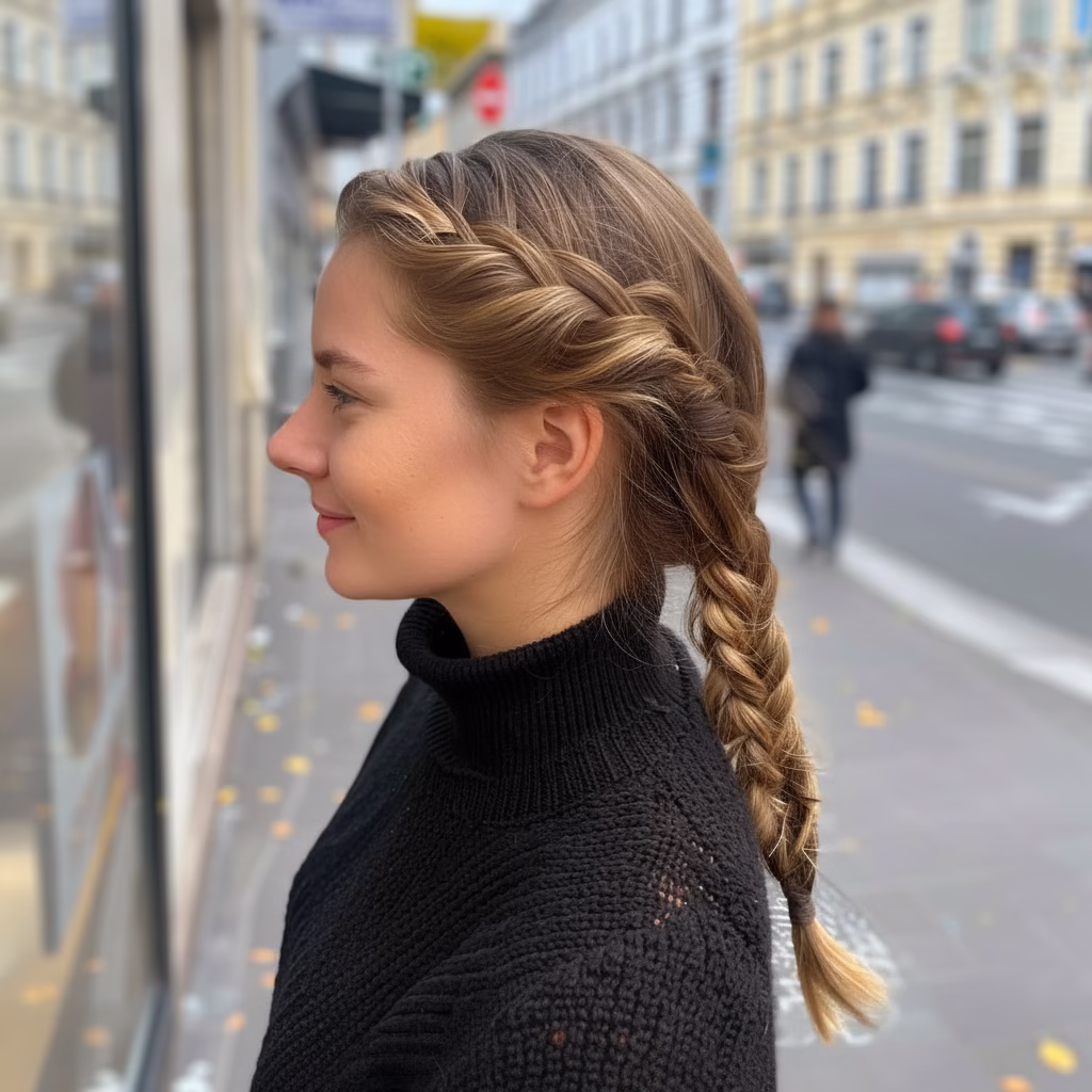 Bei mittellangem Haar wirkt der Zopf moderner und urbaner. Der Look ist ideal für Frauen, die einen stilvollen, alltagstauglichen Flechtzopf möchten. Hier dominieren Begriffe wie Medium Hair Braids, Chic Midlength Style, Urban Braid Trend und Soft Structured Flechtfrisur.