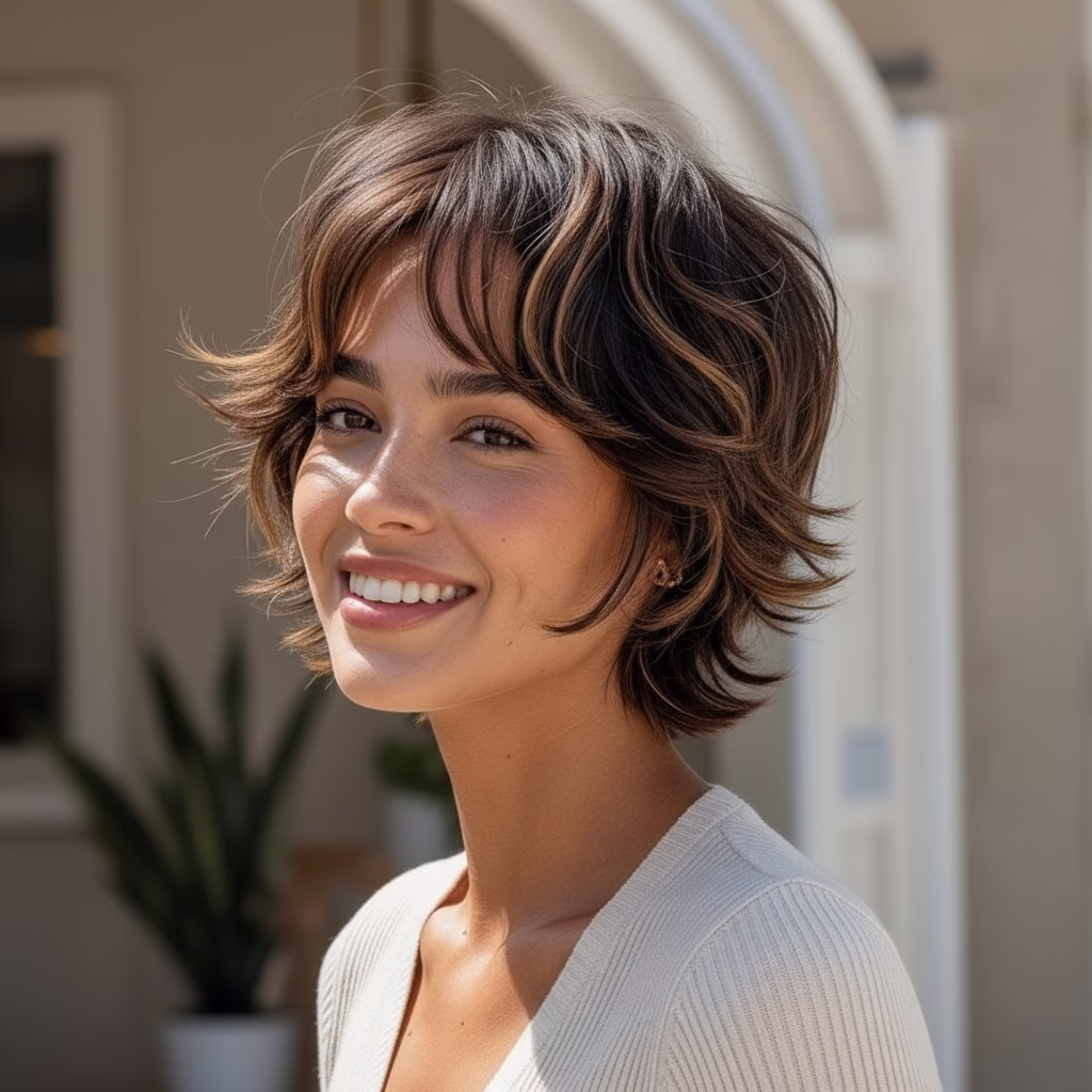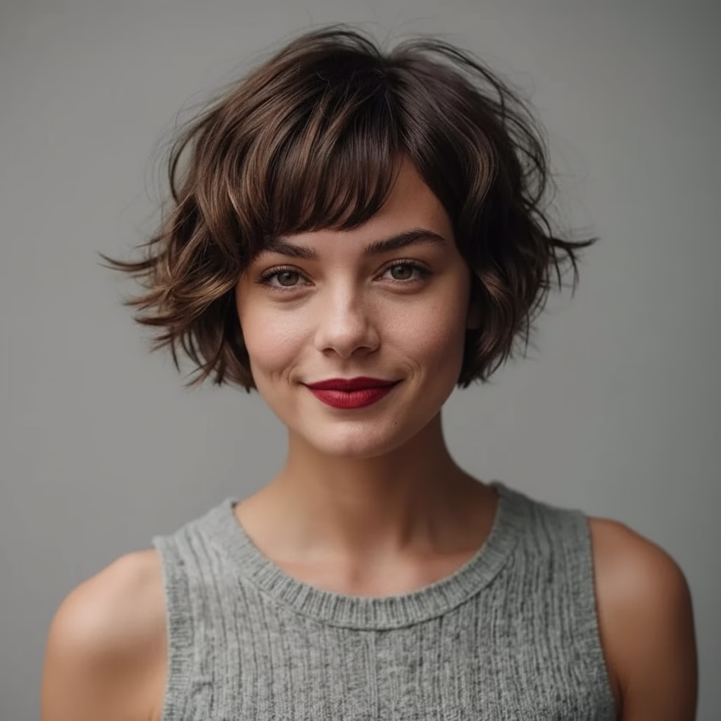 Fransige Frisuren mit Pony wirken stilvoll, ohne Aufmerksamkeit zu erzwingen.