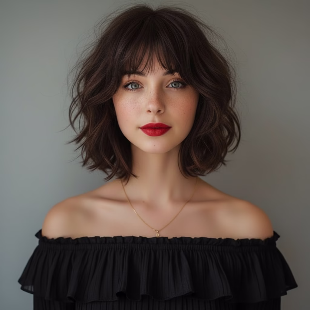 Ein fransiger Schnitt mit Pony wirkt nie zufällig. Er vermittelt Offenheit, Kreativität und ein Gespür für moderne Ästhetik. Frauen, die diesen Stil wählen, zeigen Selbstbewusstsein und eine klare Haltung zu ihrem Erscheinungsbild.