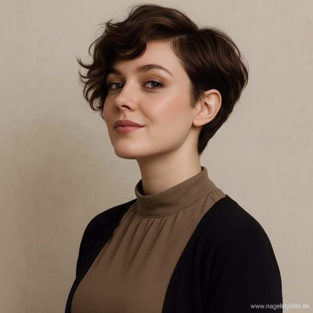 Auch lockiges oder gewelltes Haar eignet sich hervorragend für freche Kurzhaarfrisuren. Ein lockiger Pixie oder ein wilder Short Cut bringt die natürliche Textur perfekt zur Geltung. Sanfte Wellen lassen den Look leicht, verspielt und gleichzeitig kraftvoll wirken. Der natürliche Schwung sorgt ganz automatisch für Volumen und Struktur – ein klarer Vorteil für Frauen mit lebendigen Haaren.