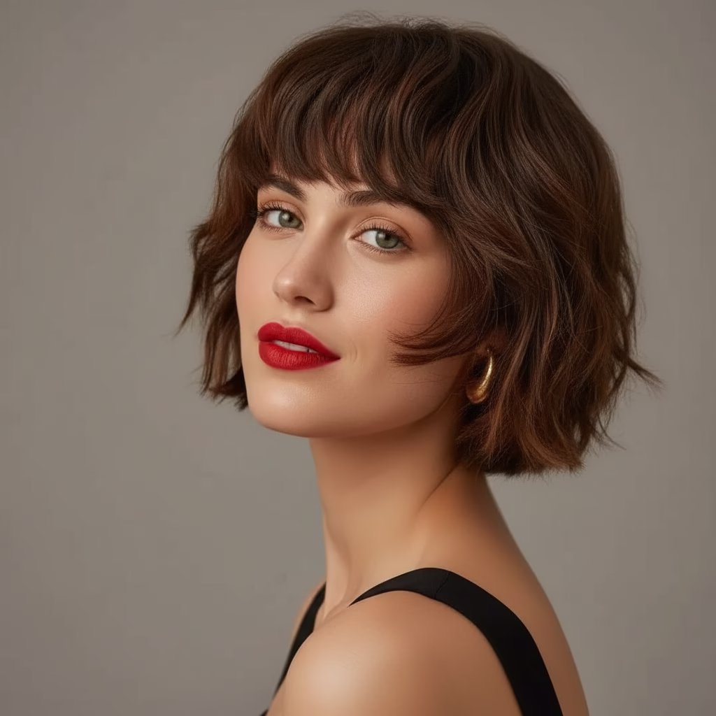 Der French Bob mit kurzem Pony verbindet klassische Elemente mit moderner Klarheit. Er wirkt kultiviert, urban und stilvoll, ohne nostalgisch zu sein.