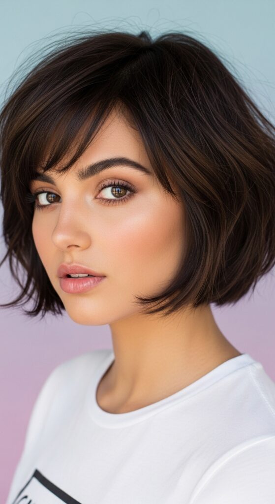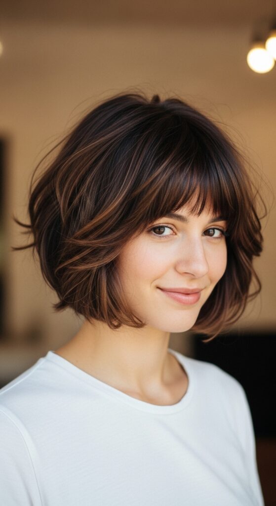 Kurze Bobs sind nicht nur pflegeleicht, sondern wirken auch unglaublich frisch und selbstbewusst. In Kombination mit soften Stufen oder einem Pony entsteht ein aufregender Look, der sowohl im Büro als auch auf der Party überzeugt. 🥂