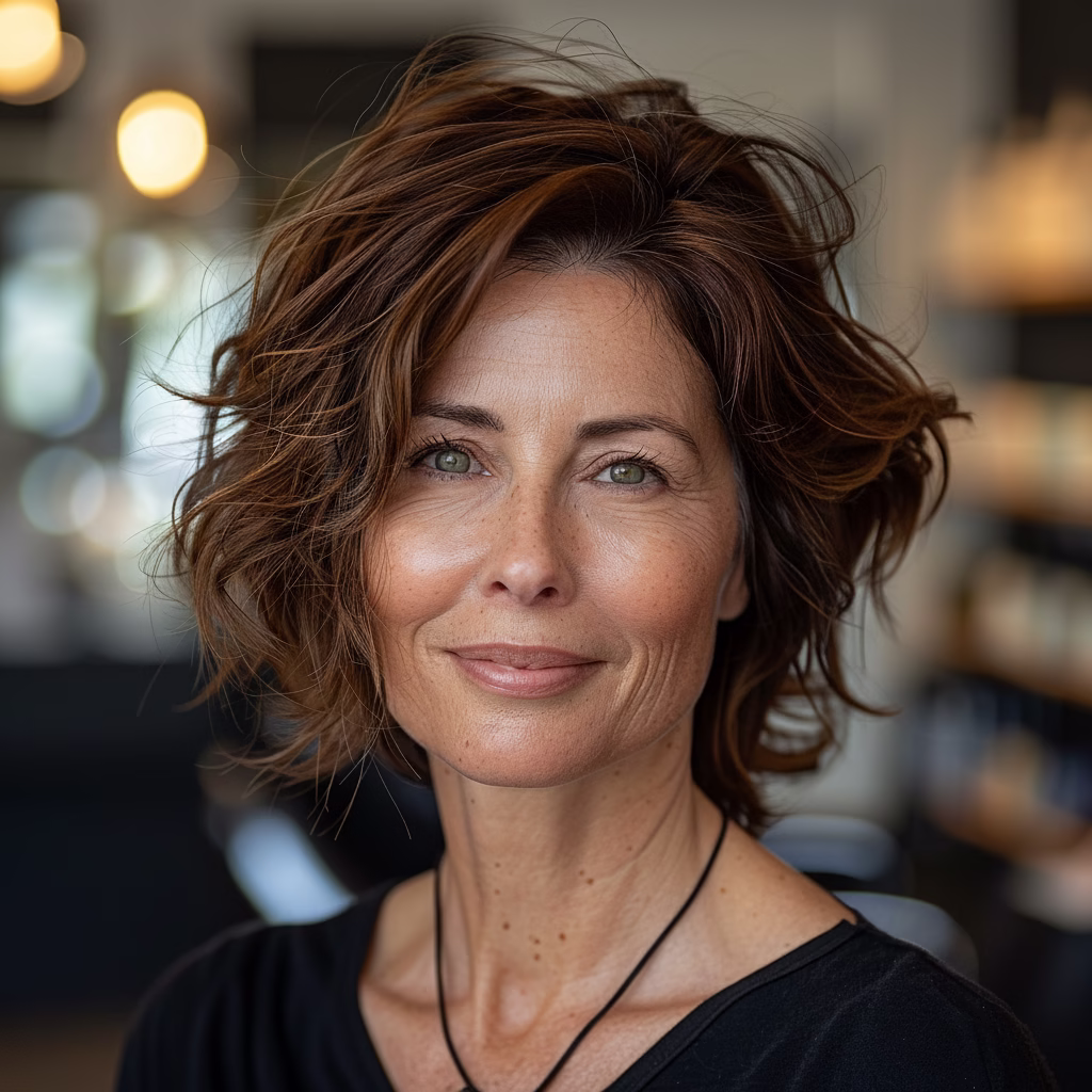 Ein großer Trend, der sich 2026 deutlich abzeichnet, ist die Rückkehr zur Natürlichkeit. Viele moderne Frisuren für Frauen ab 50 setzen auf weiche Linien, natürliche Texturen und Formen, die sich mühelos in den Alltag integrieren lassen.